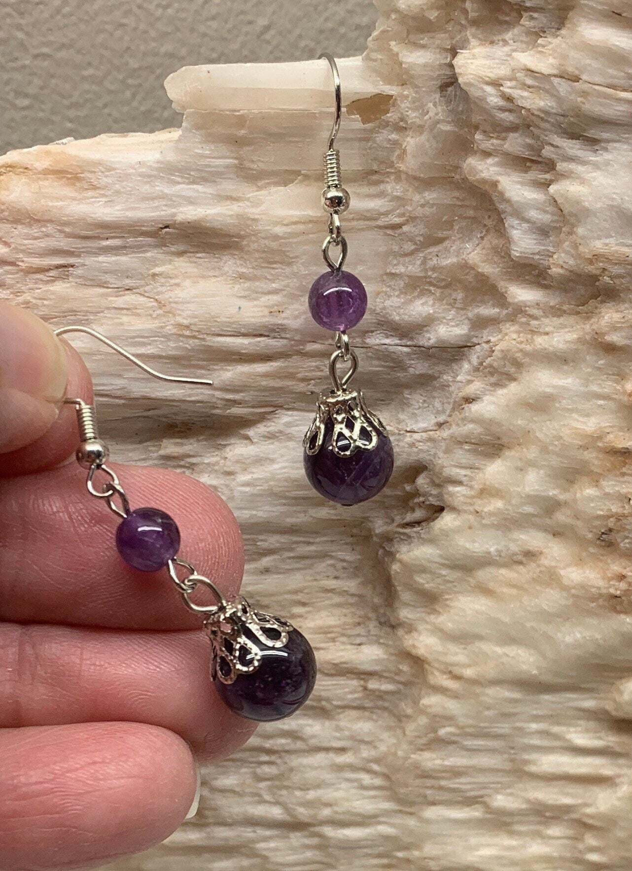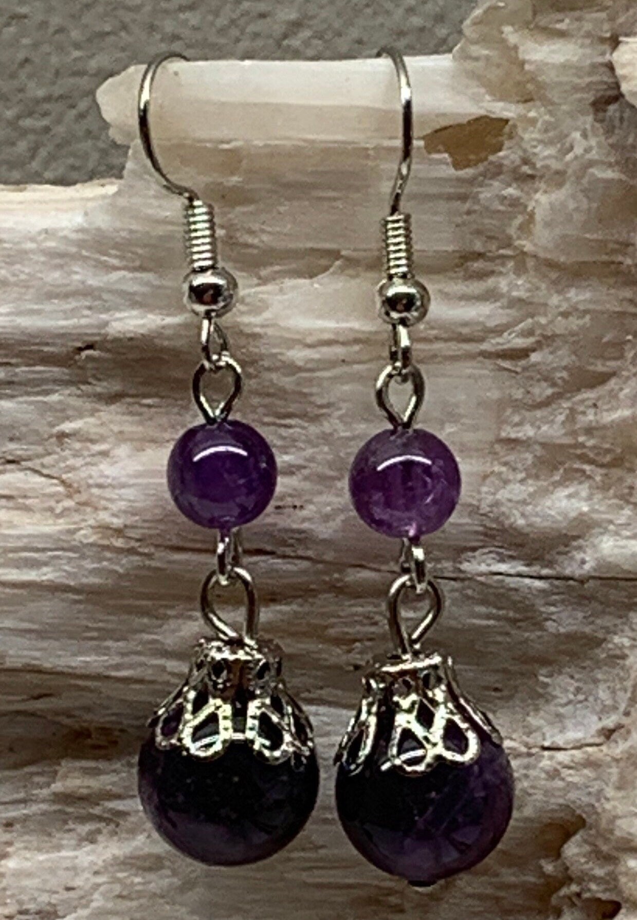 Amethyst is a powerful and protective stone. It guards against psychic attack, transmuting the energy into love and protecting the wearer from all types of harm, including geopathic or electromagnetic stress and ill wishes from others. Amethyst is a natural tranquiliser, it relieves stress and strain, soothes irritability, balances mood swings, dispels anger, rage, fear and anxiety. Alleviates sadness and grief, and dissolves negativity. Amethyst activates spiritual awareness, opens intuition and enhances psychic abilities. It has strong healing and cleansing powers. Amethyst encourages sobriety, having a sobering effect on overindulgence of alcohol, drugs or other addictions. It calms and stimulates the mind, helping you become more focused, enhancing memory and improving motivation. Amethyst assists in remembering and understanding dreams. It relieves insomnia. Encourages selflessness and spiritual wisdom. You will receive one bracelet similar to that pictured in this listing. Handmade with natural stones. Balance your life with this beautiful healing crystal bracelet. Great gift for yourself and others. See more at stonepathtrading.com