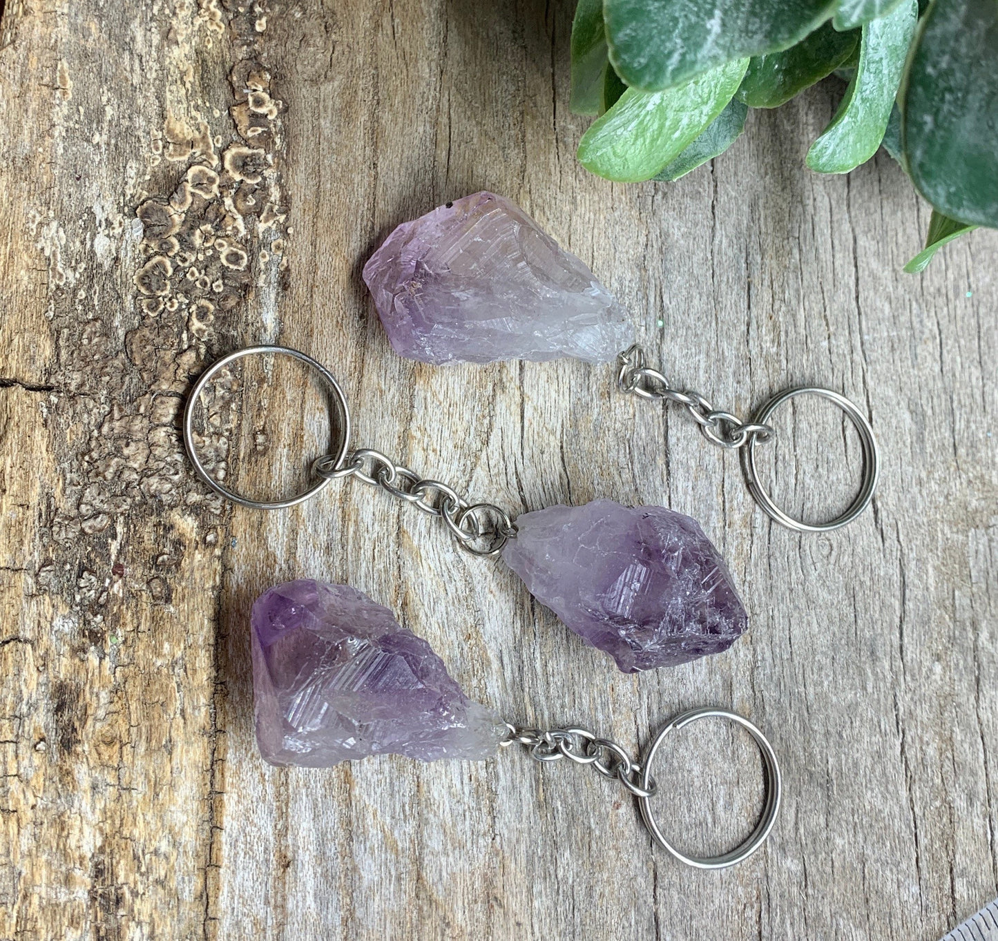 Amethyst Point Keychain 1172 Believed to attract healing, protection, love, enlightenment and bliss. Also to be a supportive stone in the healing process by giving courage & stress relief. Also believed to bring intuition and inspired thought. Amethyst has a high frequency that is helpful in purifying the aura. This stone is a stone of focus and success, and victory. stonepathtrading.com