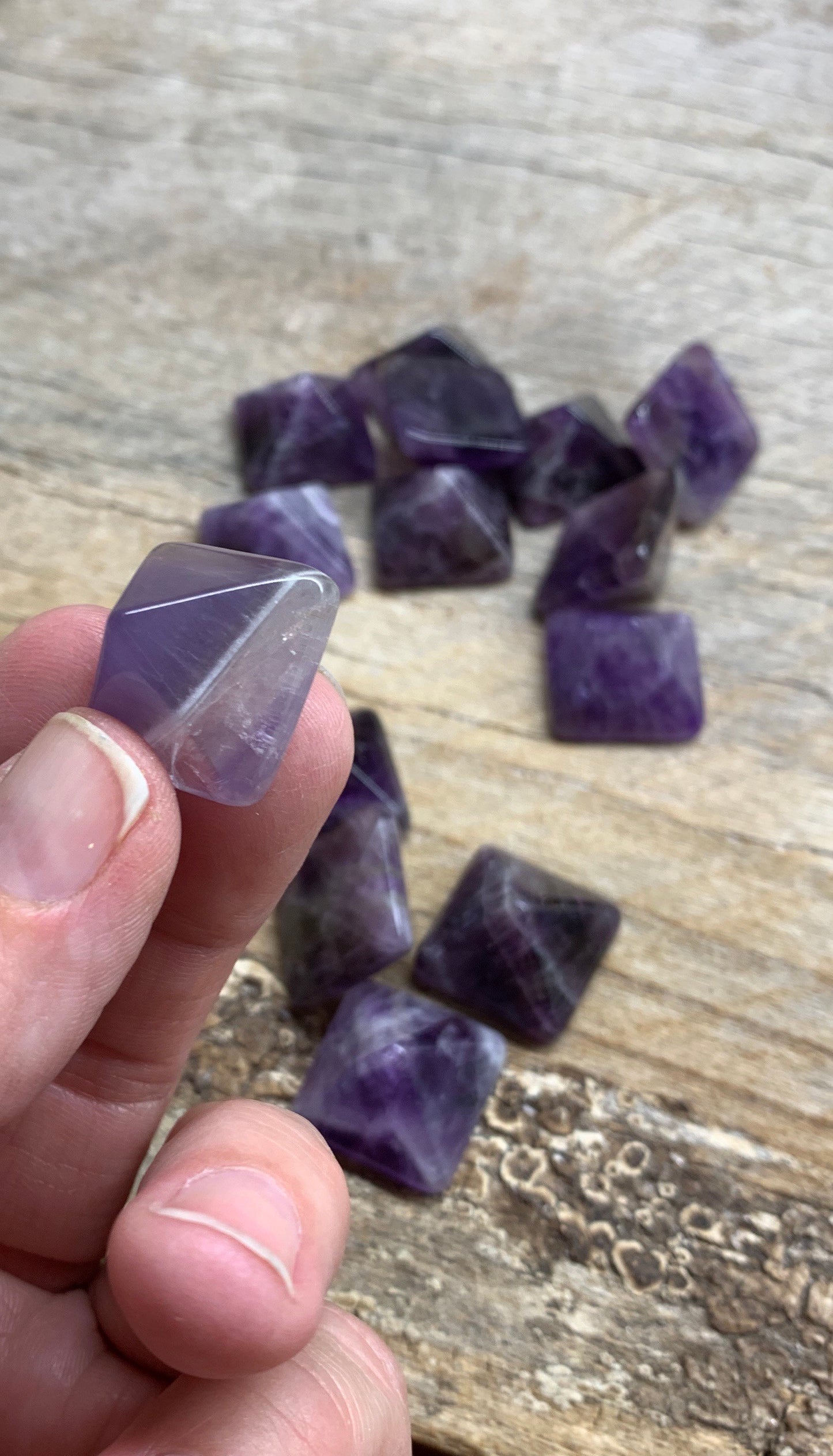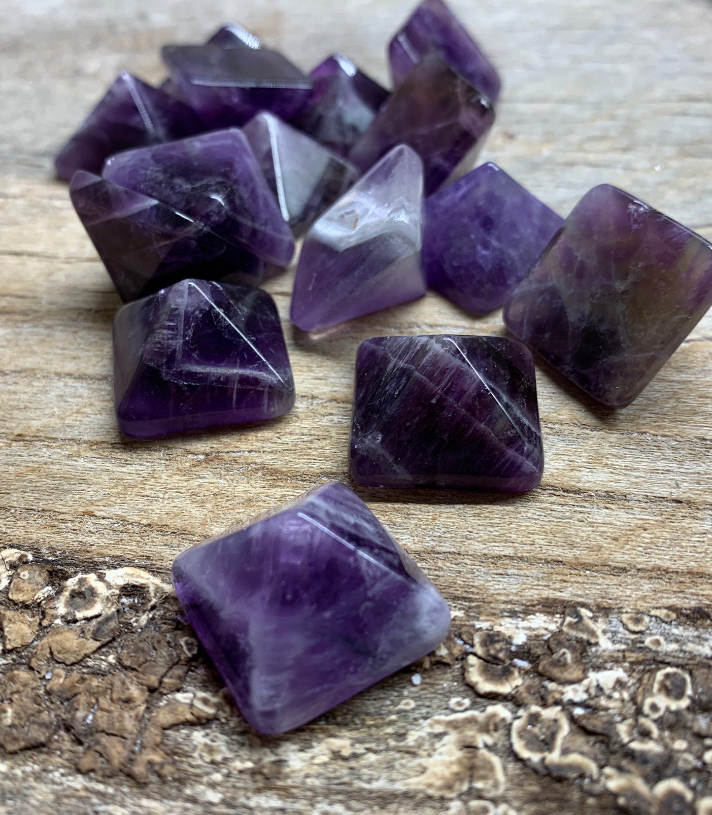 Amethyst Pyramid Approx. 1”(Approx. 3/4” x 3/4" x 5/8") 0343 Spirituality and Contentment. Spiritual protection and purification. See more at stonepathtrading.com