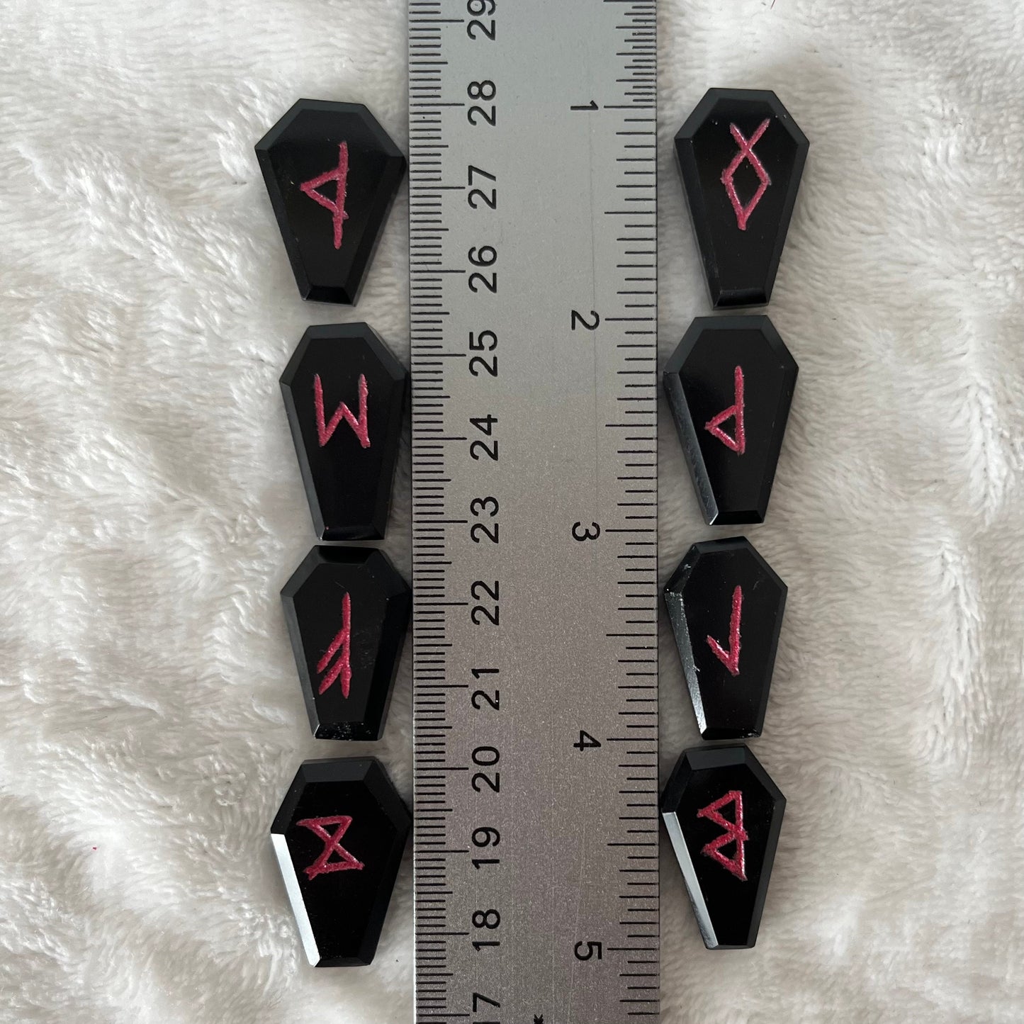 Black Obsidian Coffin 25 Piece Rune Set KIT-0044 •Psychic Protection