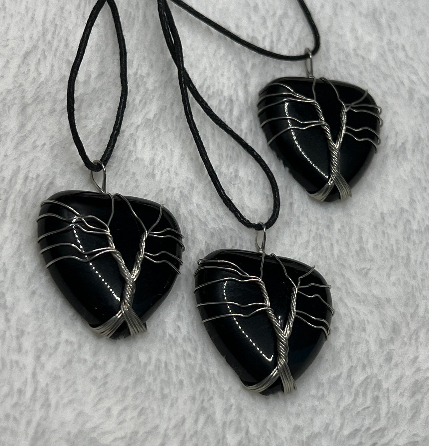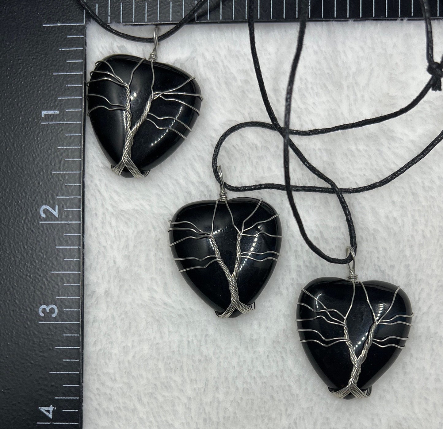 Black Obsidian Heart Wire Wrap Necklace, Tree of Life 1073 Powerful stone of protection. Protection from darkness. Stone of truth. Balance your life with this beautiful healing crystal. Great gift for yourself and others. See more at stonepathtrading.com