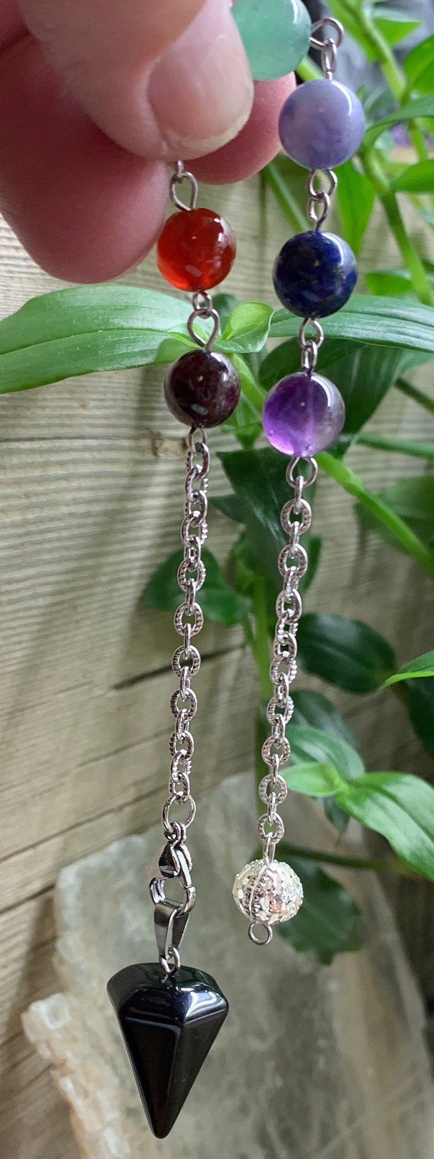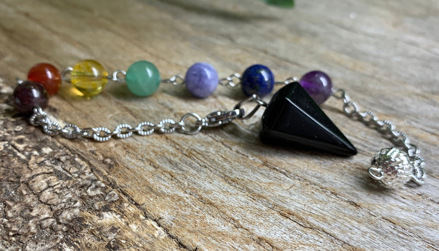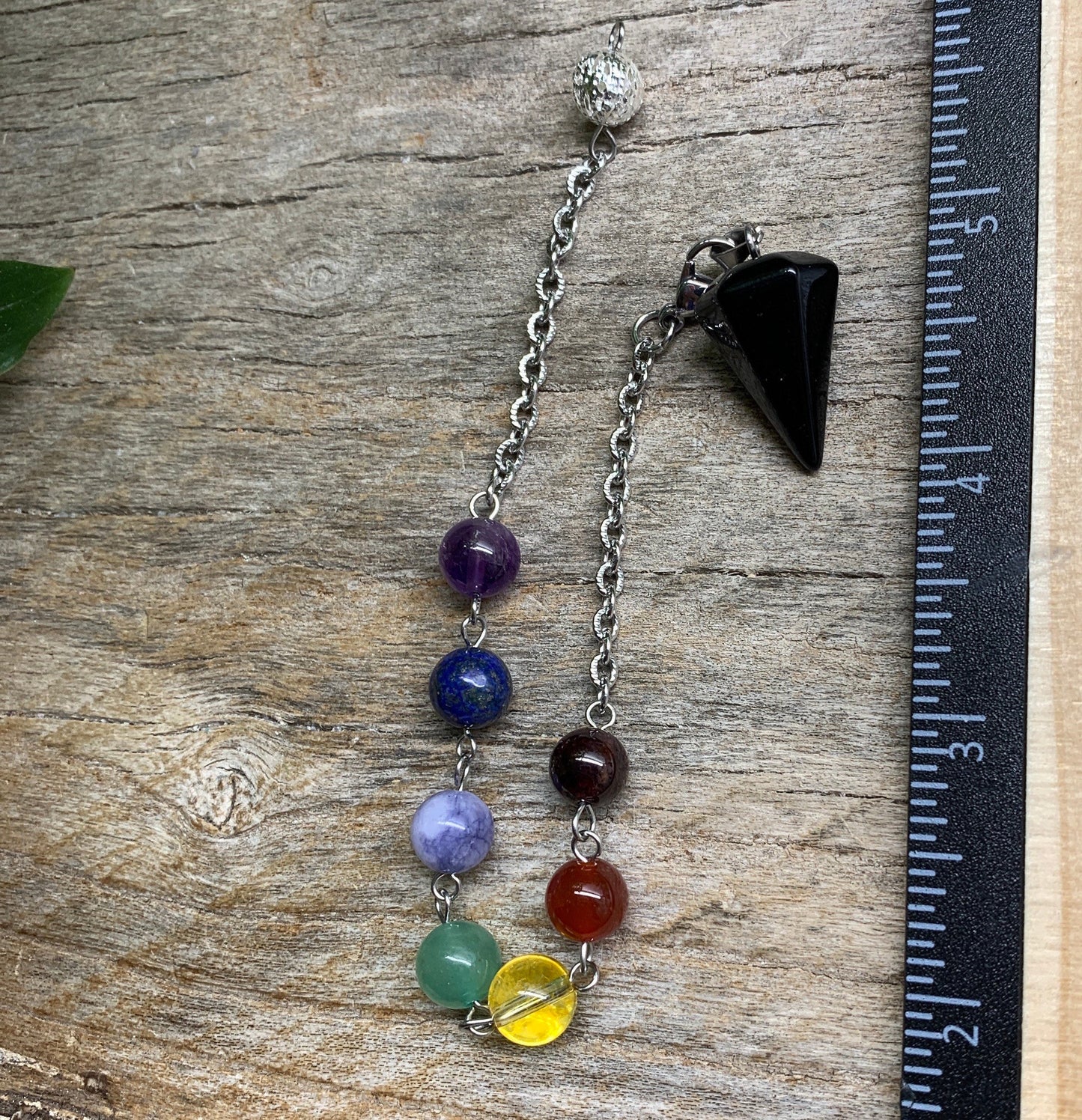 Black Obsidian Pendulum with Chakra Beads PND-0032