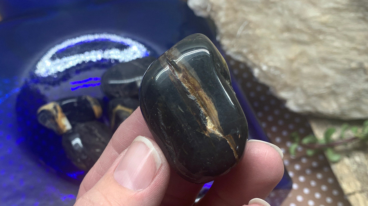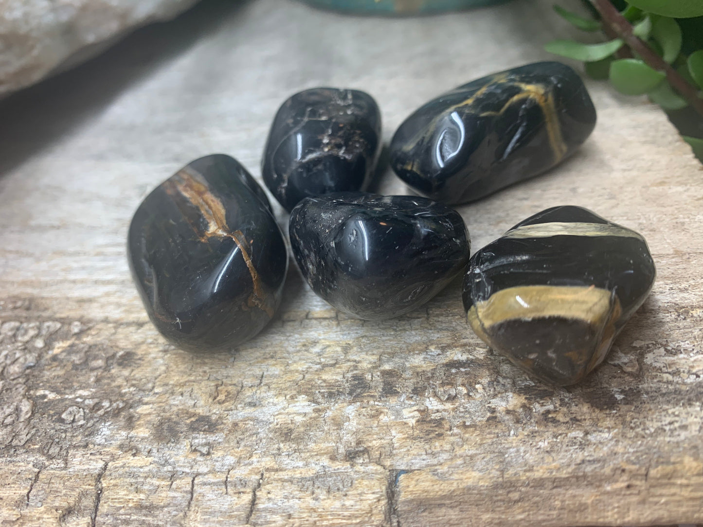 Black Onyx Tumbled Stone (Approx. 1 1/2" - 1 3/4") 0612 You will receive one stone that I will intuitively choose from the ones pictured in this listing. Size is approximate and each stone varies. Black Onyx improves decision making and promotes intuition. Helps to realize material goals. Stability in spiritual and emotional. Grounding. Root chakra. See more at stonepathtrading.com