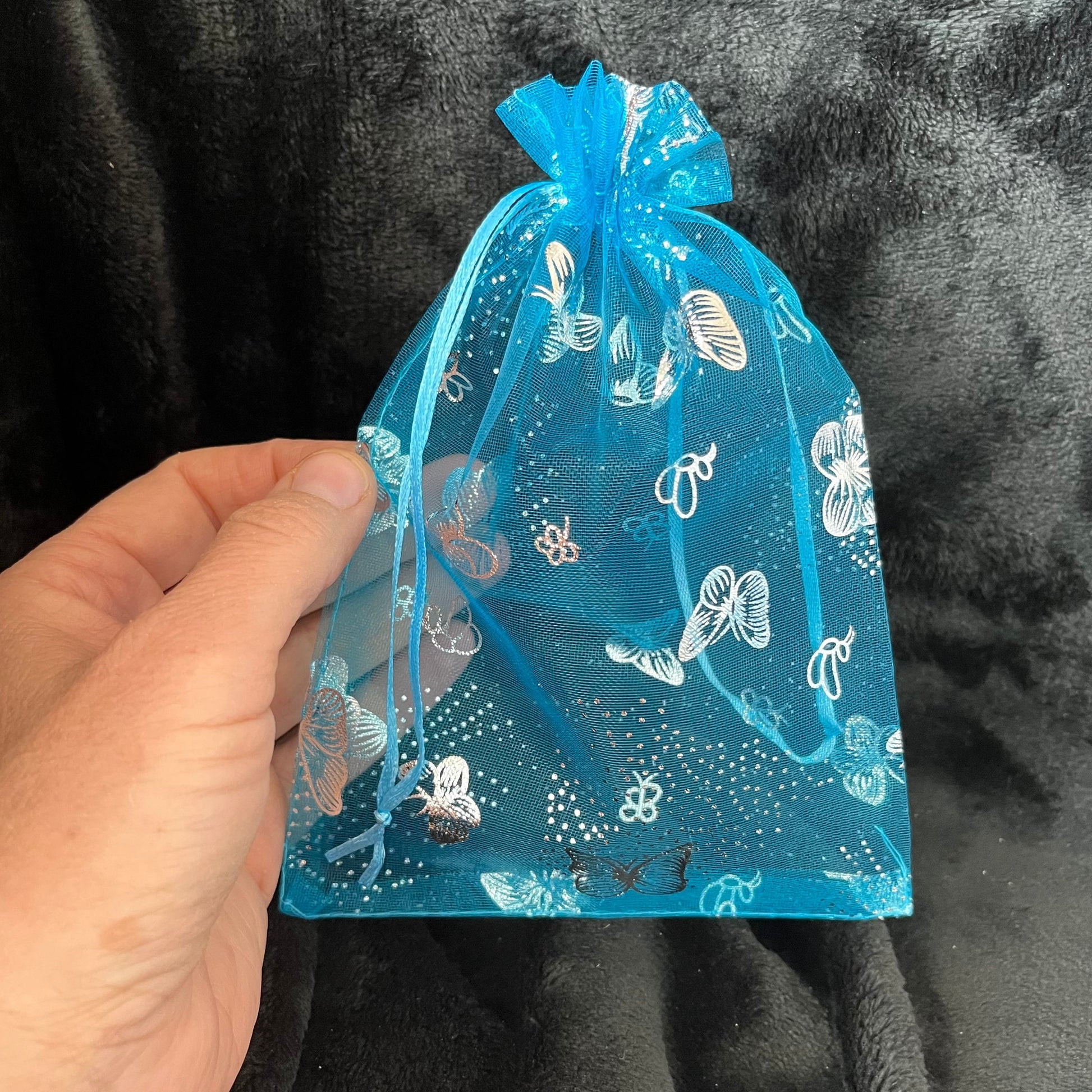 Blue Metallic Butterfly Organza Drawstring Bag (Approx. 5”X7”) BIN-0057 Excellent for storing crystals or using in crystal grid. You will receive one bag similar to that pictured in this listing. Great gift for yourself and others. See more at stonepathtrading.com