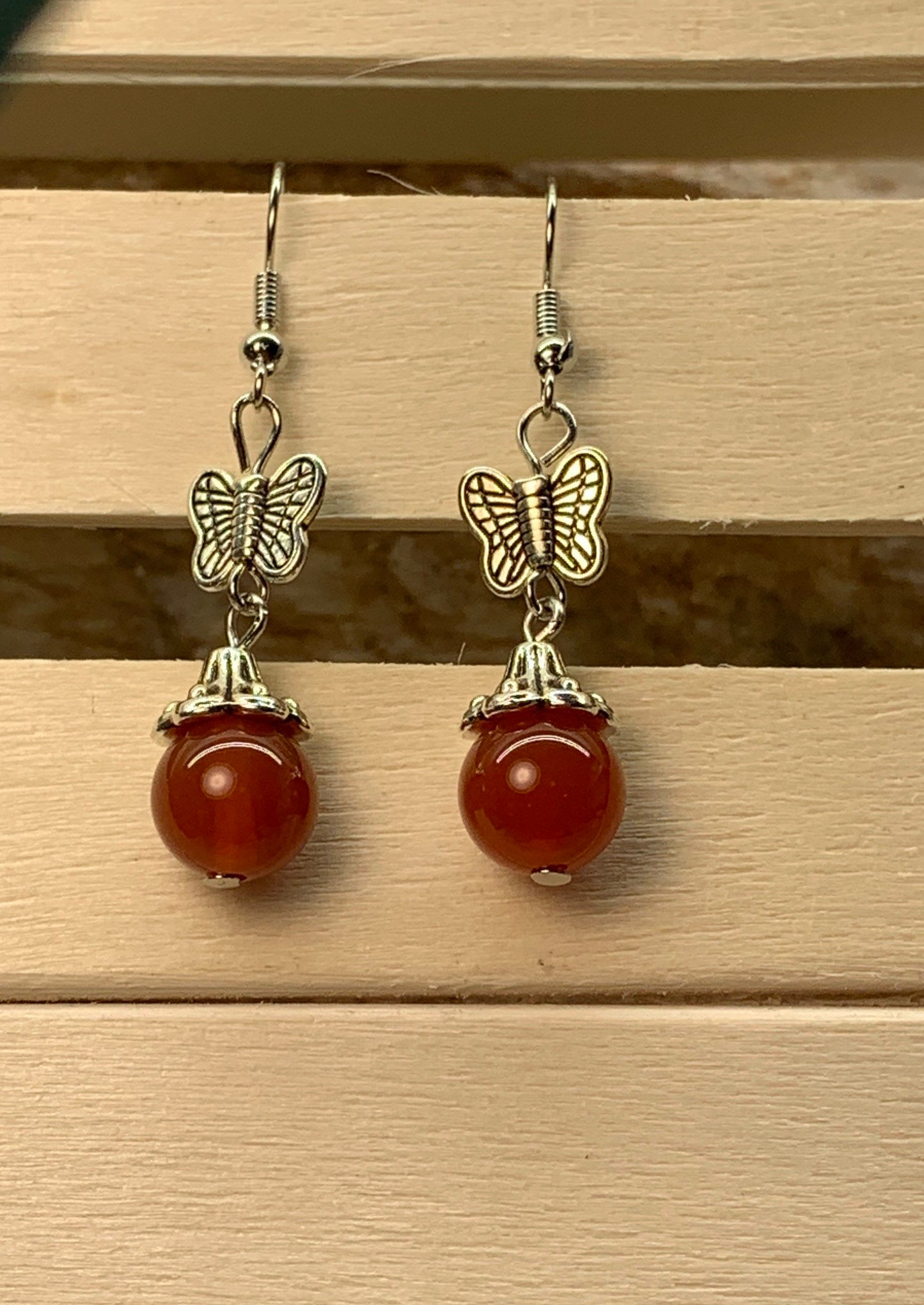 Carnelian Agate Butterfly Earrings EAR-0023 Healing, calm, good health. See more at stonepathtrading.com