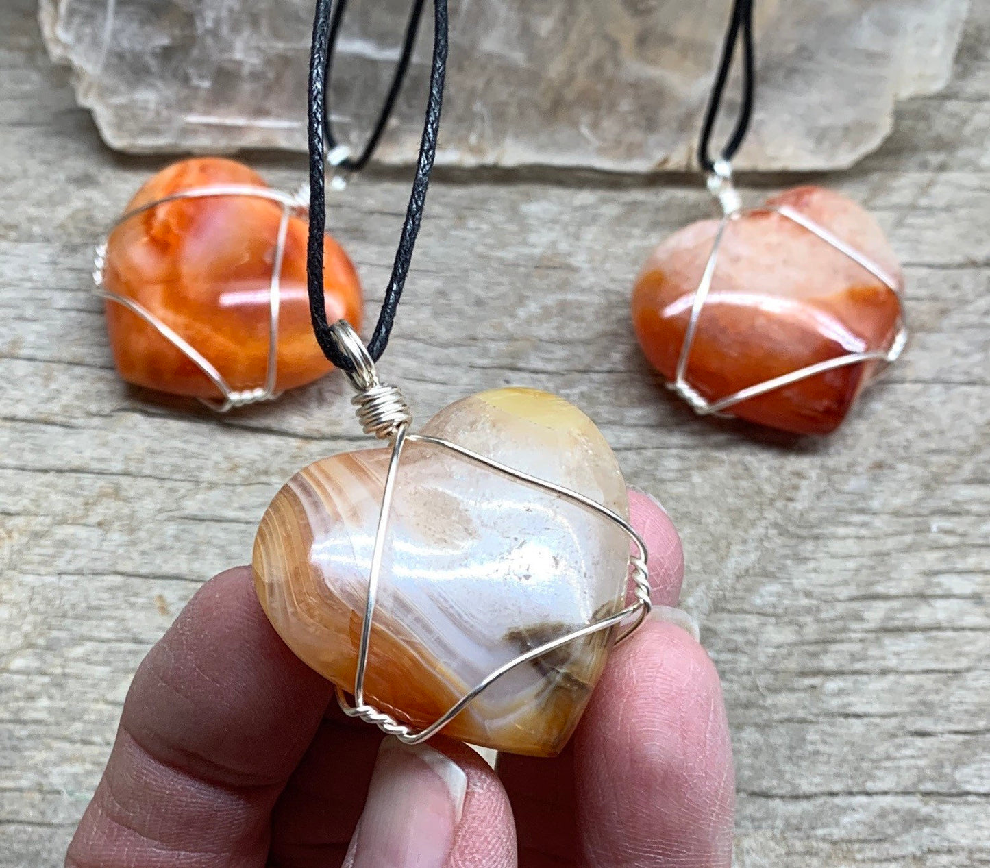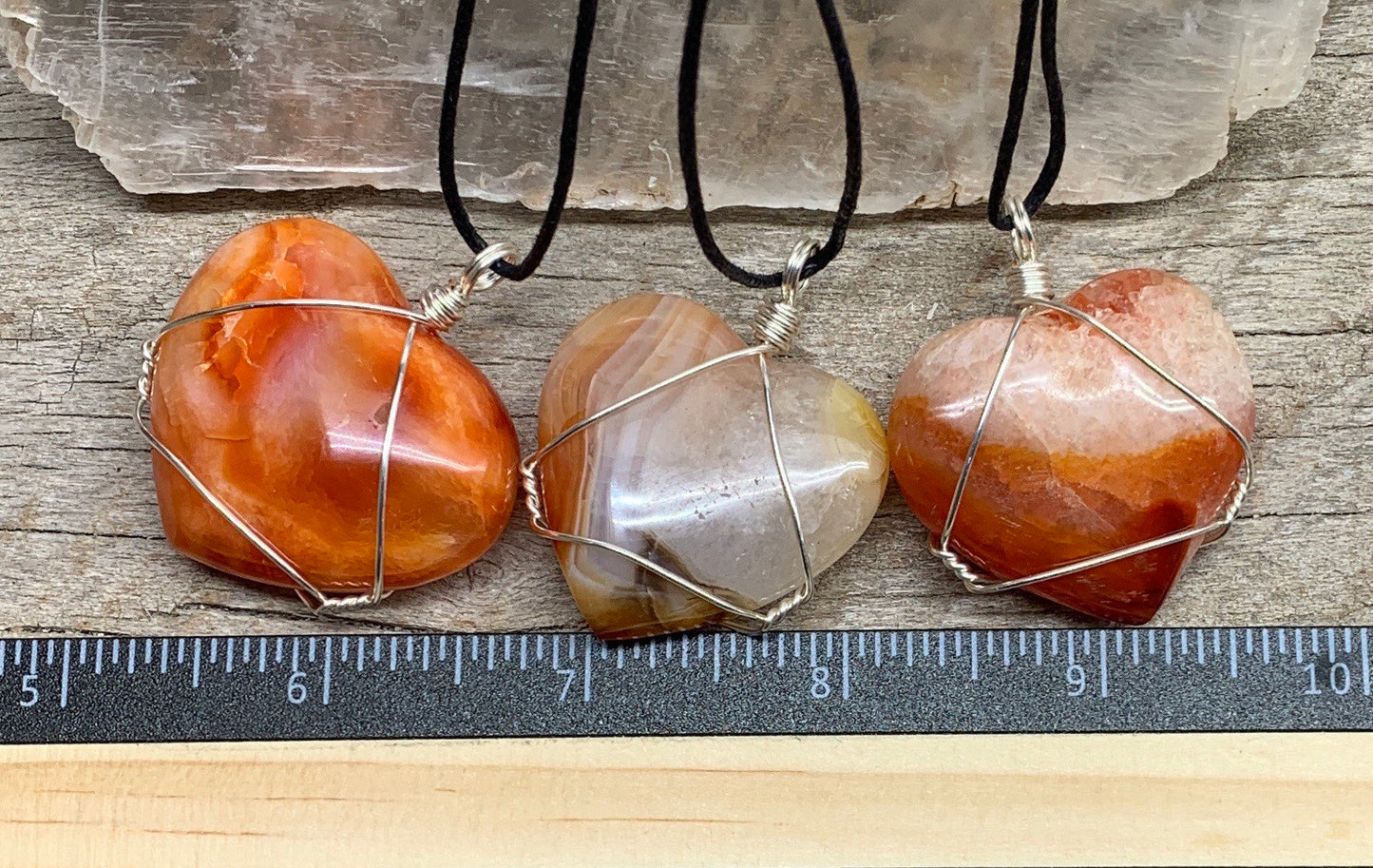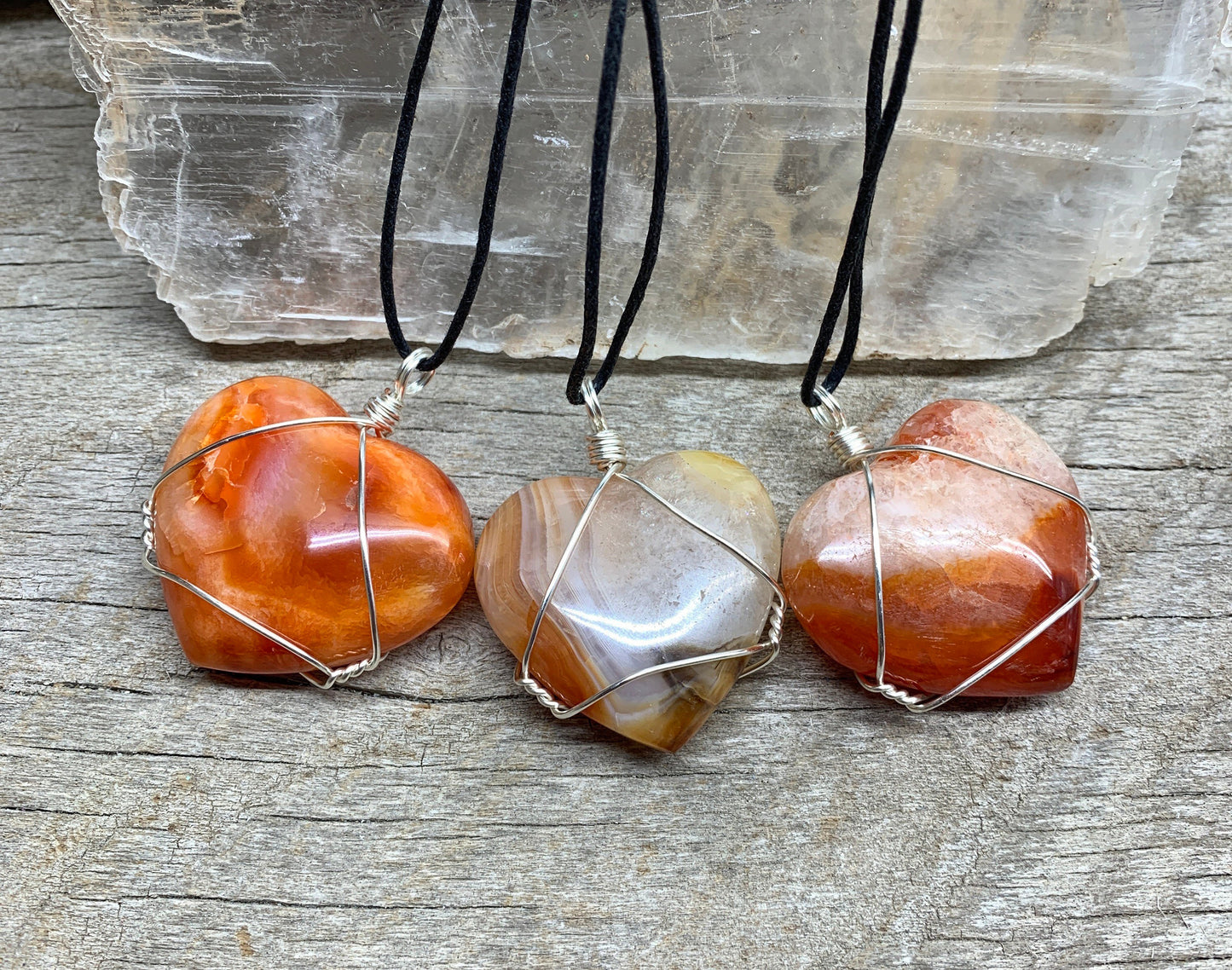Carnelian Agate Heart wire Wrapped Necklace 1096 (Large) Adjustable Black Cord Protects against envy, rage and resentment. Calms anger, banishes emotional negativity replacing with love. See more at stonepathtradingcom