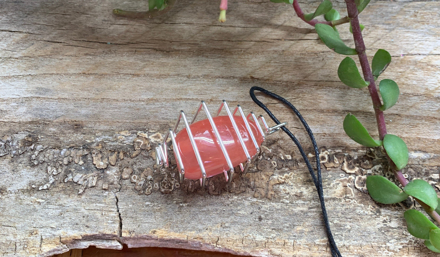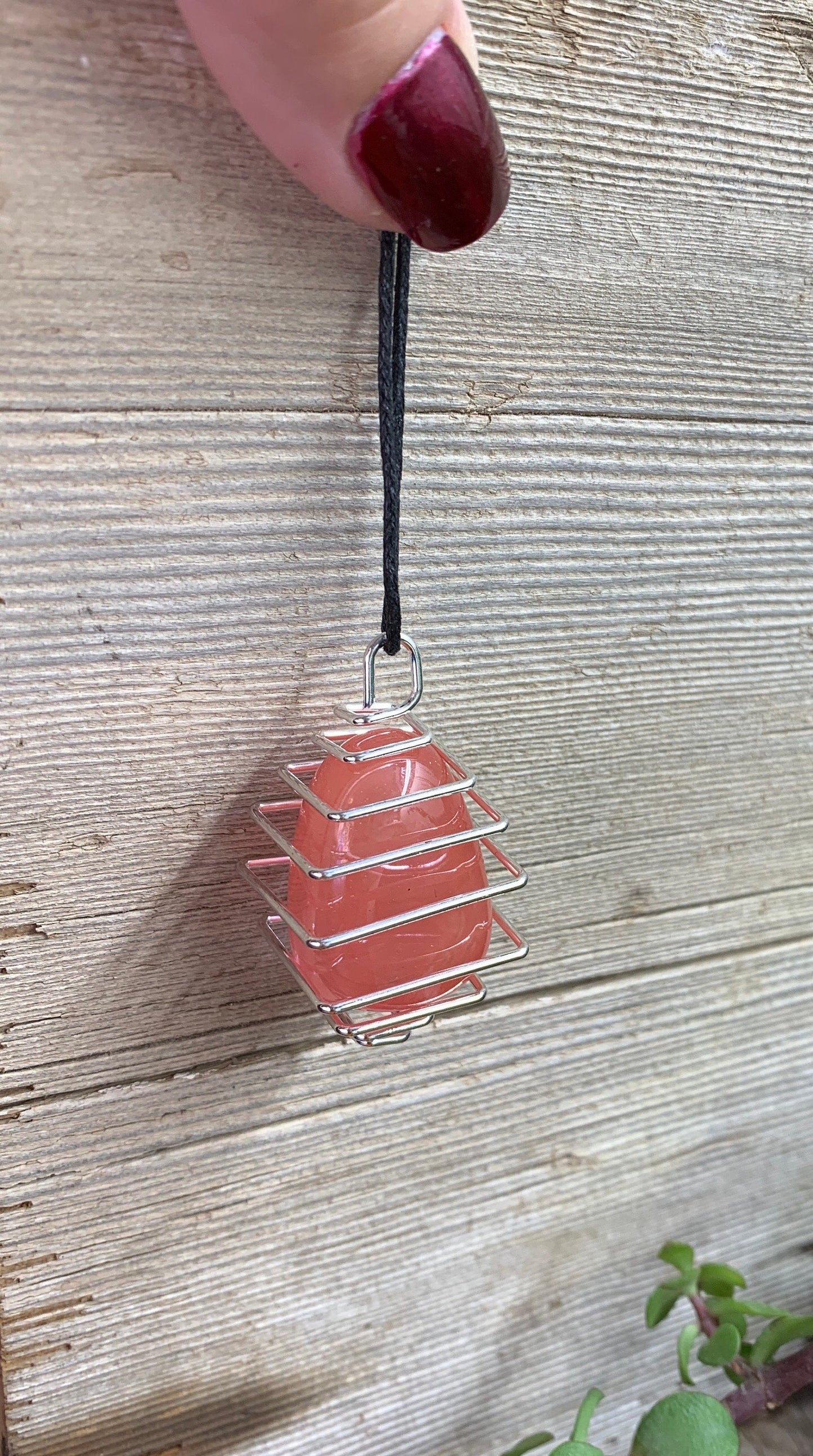Cherry Quartz Square Cage Necklace 1052 Rose quartz is believed to the stone of universal love. Also believed to restore trust and harmony in relationships. Heals relationship problems and is very soothing to everyone in its presence. You will receive on necklace similar to that pictured in listing. See more at stonepathtrading.com