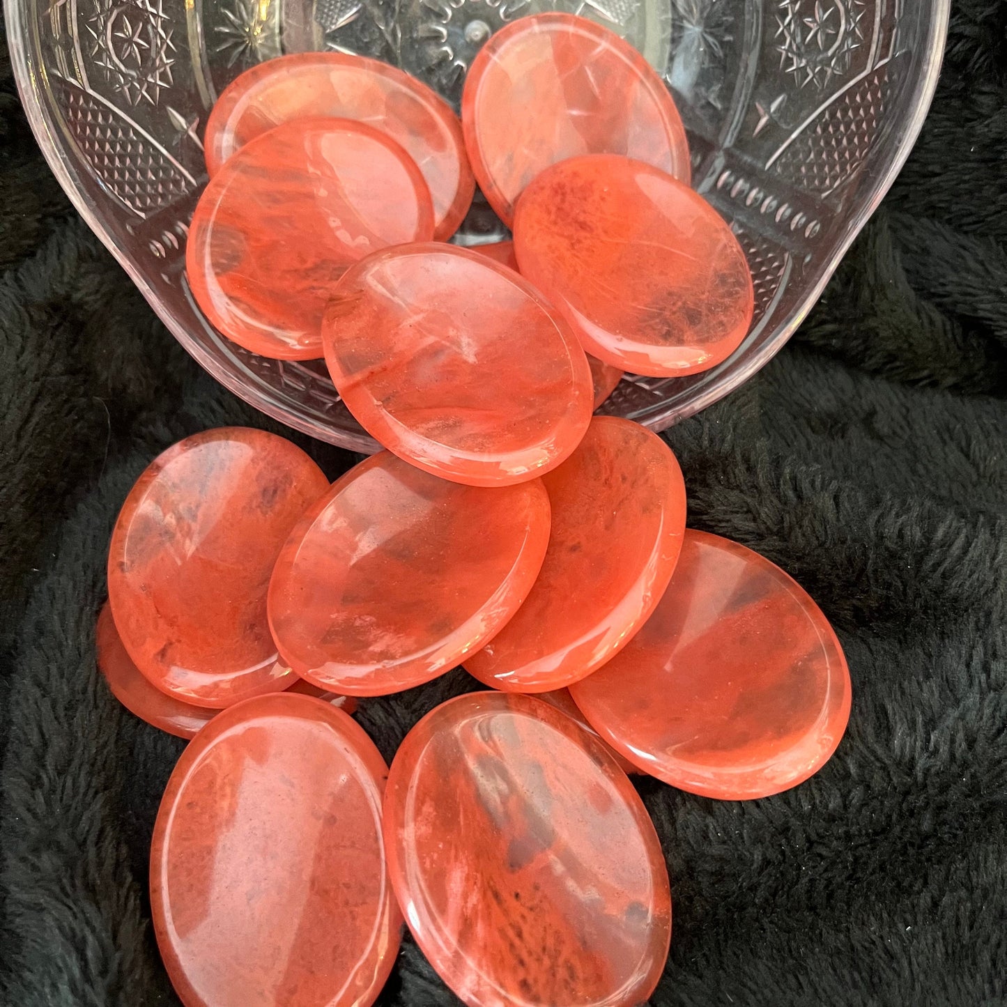 Cherry Quartz Worry Stone (Approx. 1 3/8" x 1 3/4) 1397 You will receive one of the stones pictured in the listing intuitively chosen by me. Size is approximate and each stone varies •Heal emotional wounds •Diffuse strong negative emotions •Self-love and peace See more at stonepathtrading.com