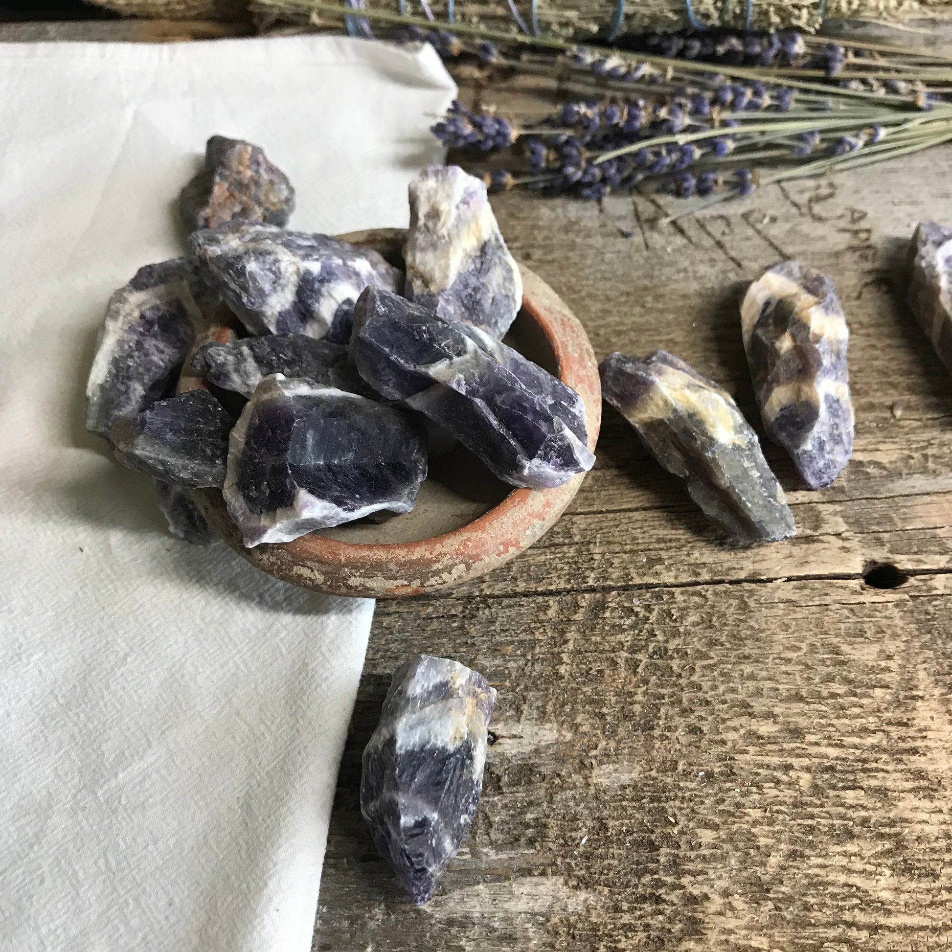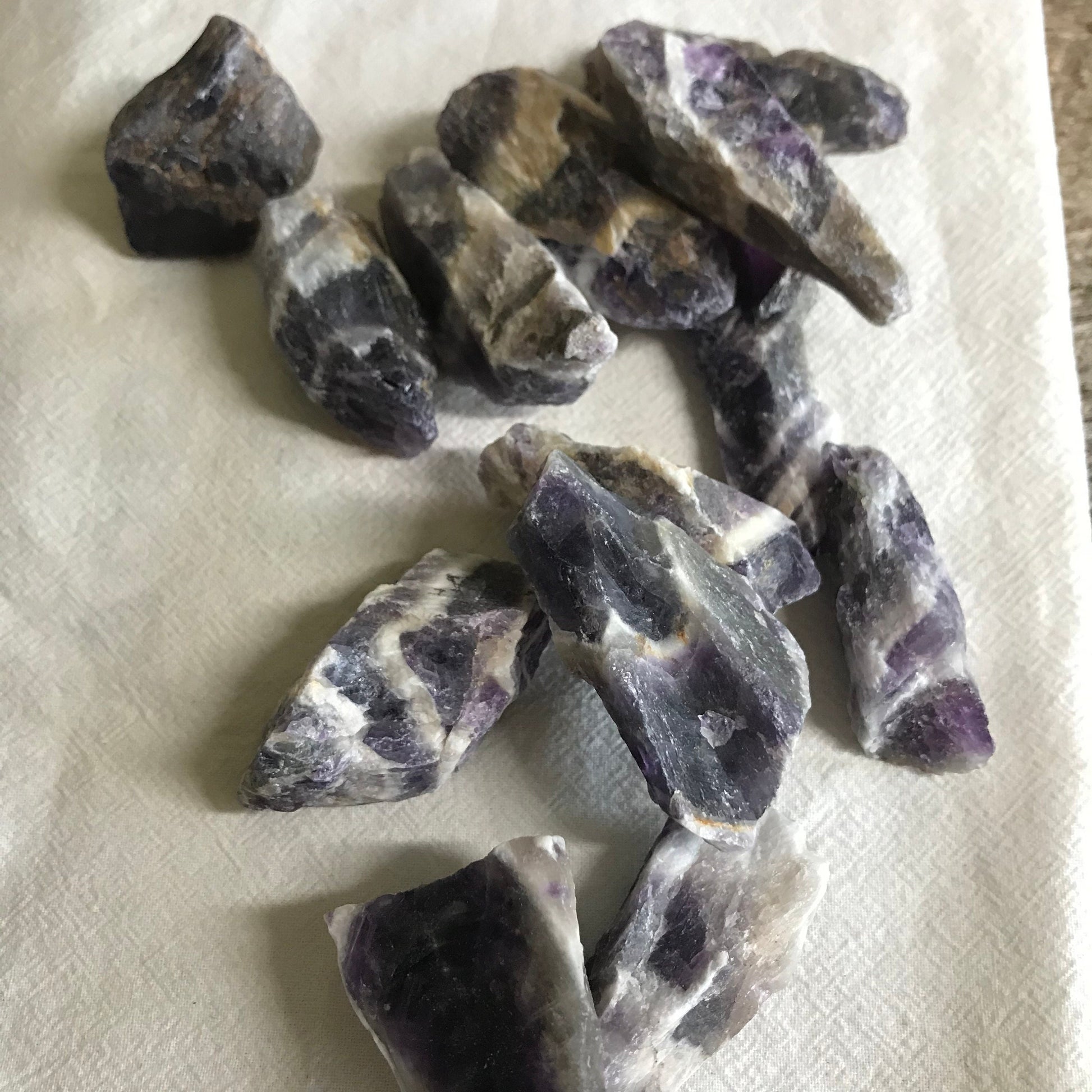 Chevron Amethyst, Raw/RoughOne Crystal (Approx 1 1/2"- 2 1/2 Long) for Protection, Purple Amethyst 1267 You will receive one of the crystals pictured in listing. Size is approximate and each stone varies. Amethyst Believed to attract healing, protection, love, enlightenment and bliss. Also to be a supportive stone in the healing process by giving courage & stress relief. Also believed to bring intuition and inspired thought. Amethyst has a high frequency that is helpful in purifying the aura. This stone is a stone of focus and success, and victory. stonepathtrading.com