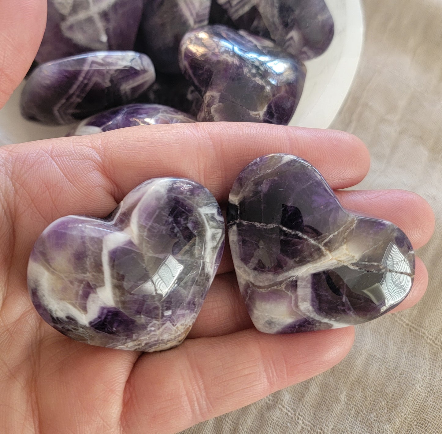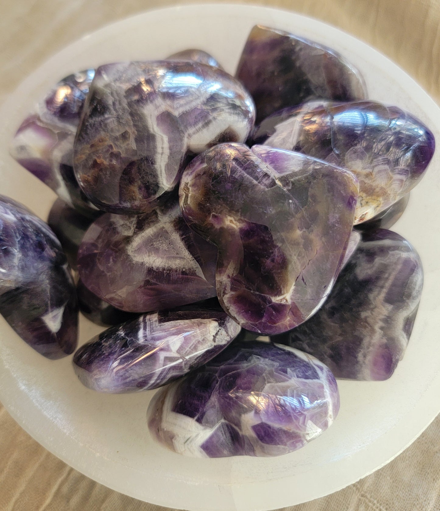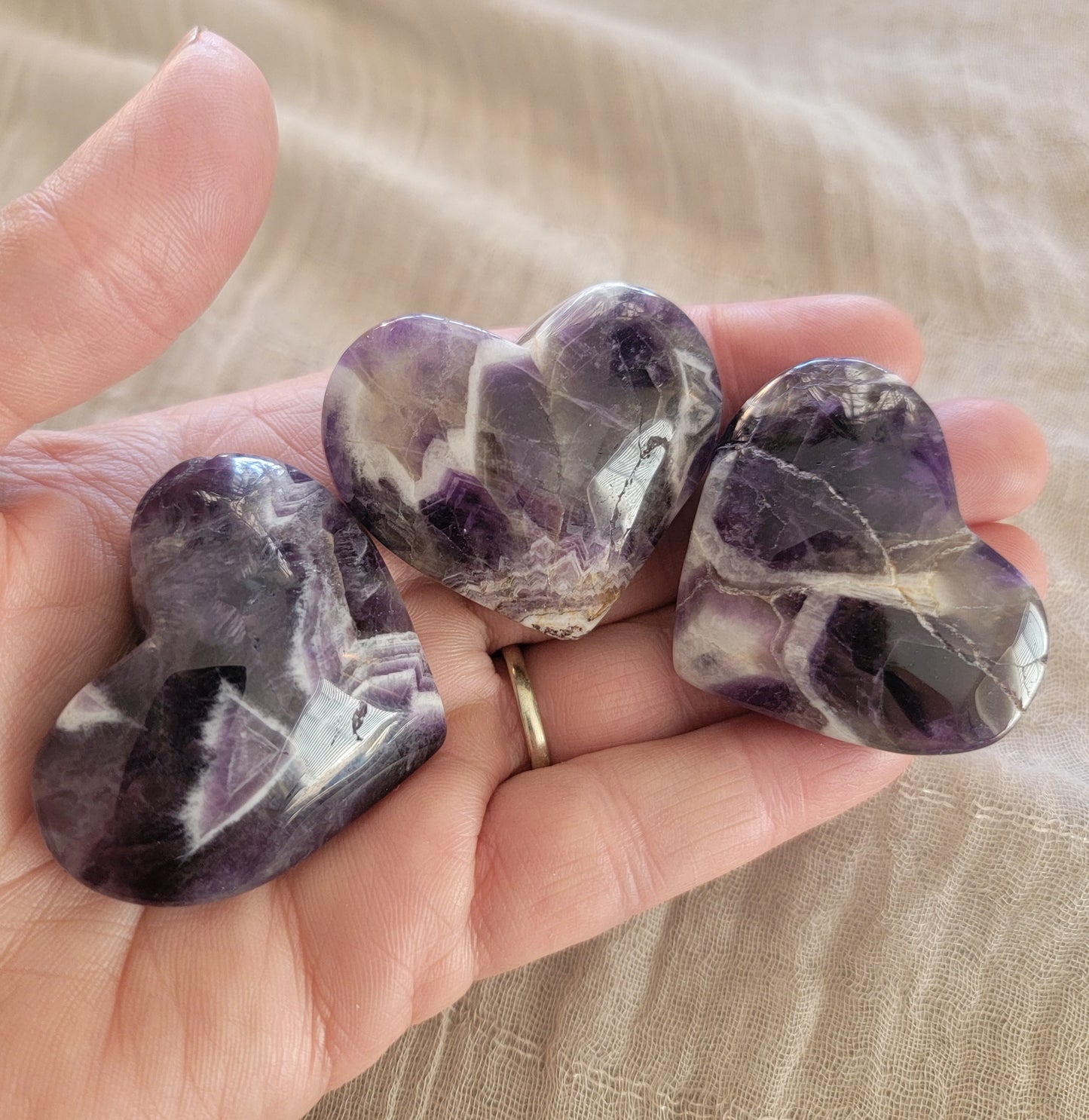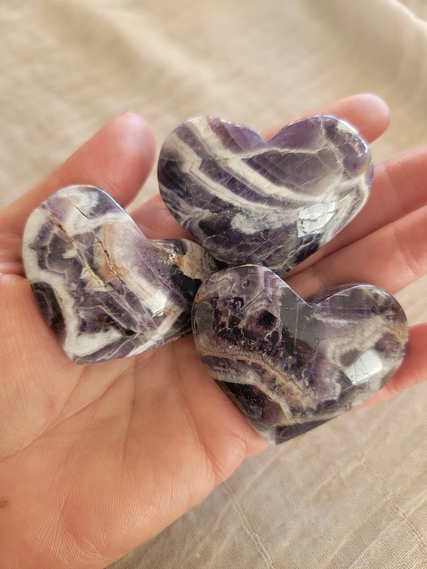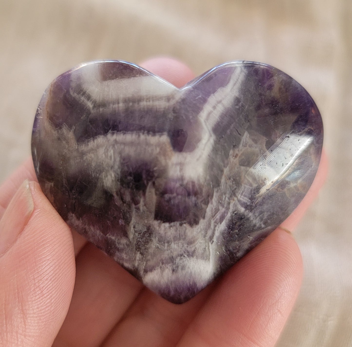 Dreamy Amethyst Heart 0389 Approx. 1 1/2”- 1 3/4” Believed to attract healing, protection, love, enlightenment and bliss. Also to be a supportive stone in the healing process by giving courage & stress relief. Also believed to bring intuition and inspired thought. Amethyst has a high frequency that is helpful in purifying the aura. This stone is a stone of focus and success, and victory. stonepathtrading.com