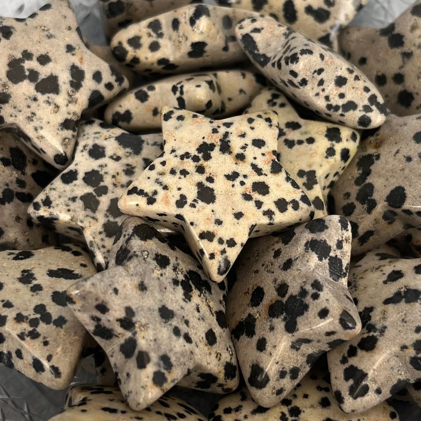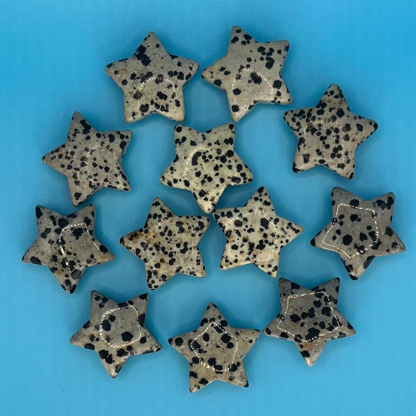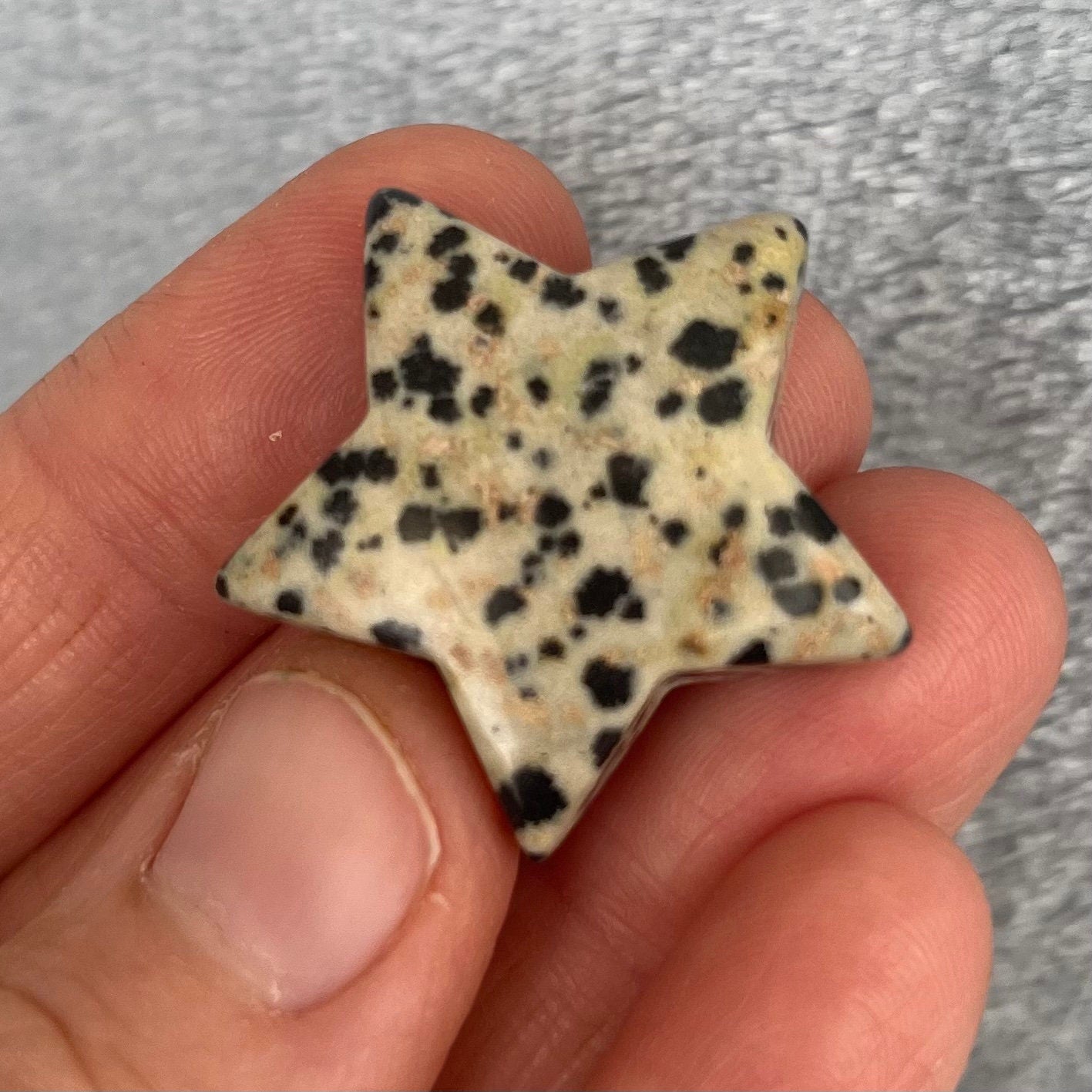 Dalmatian Jasper Star (Approx 1 1/4”) 0104 You will receive one of the crystals pictured in the listing intuitively chosen by me. Size is approximate and each stone varies. Dalmatian Jasper encourages openess and expressions of joy and laughter. Dispels negativity. Protective. See more at stonepathtrading.com
