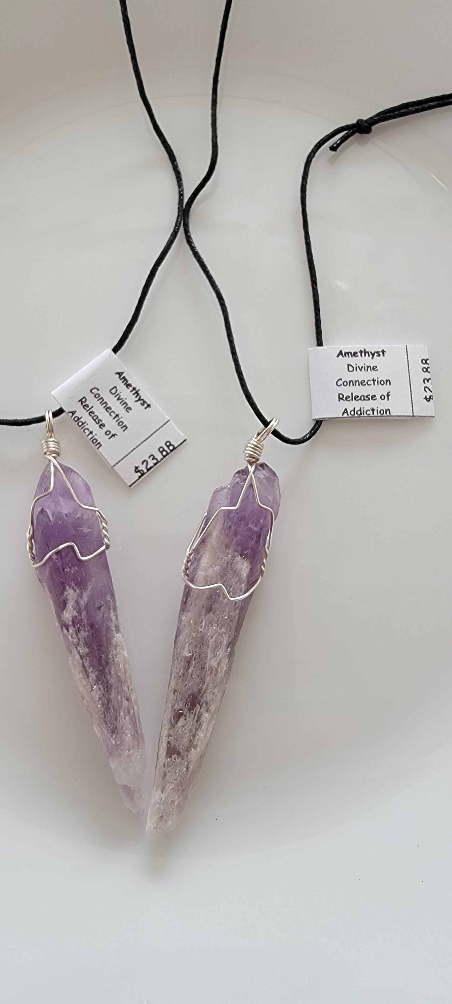 Dragon's Tooth Amethyst Crystal, Hand Made, Wire Wrapped Necklace WN-0030