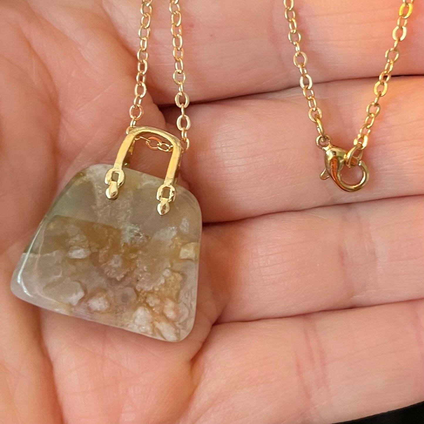 Flower Agate Handbag Necklace NCK-2707