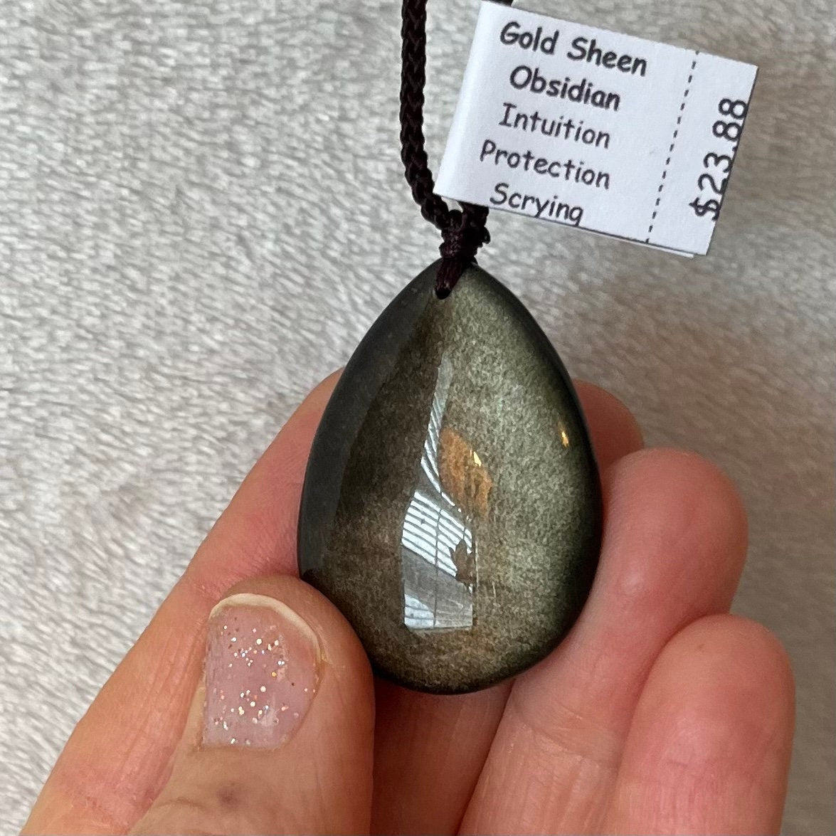 Gold Sheen Obsidian Teardrop Necklace NCK-2818