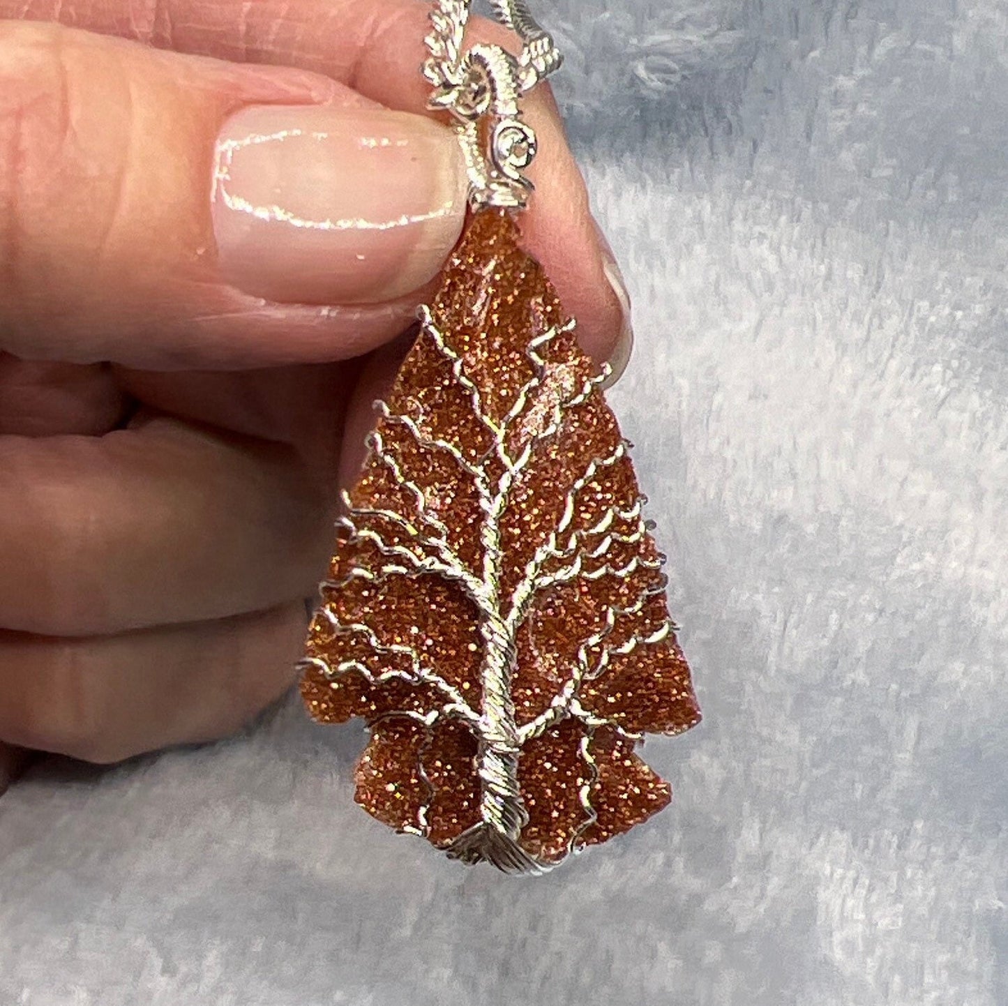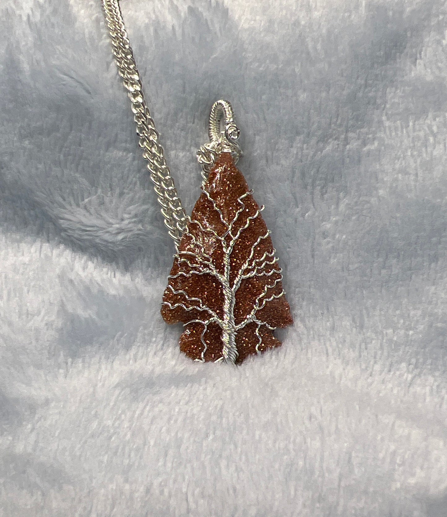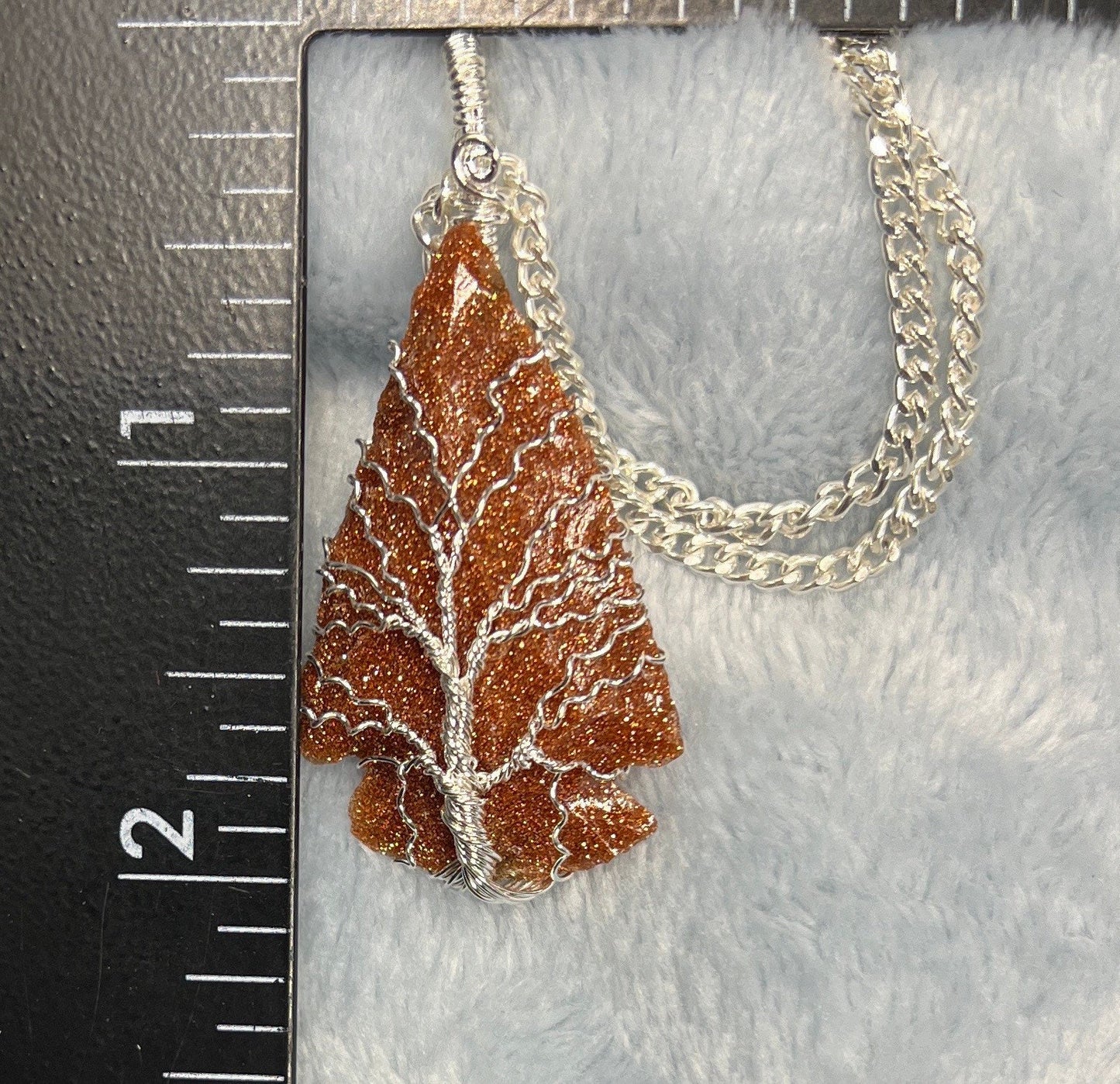 Goldstone Knapped Arrowhead Wire Wrapped Necklace Tree Of Life NCK-2389