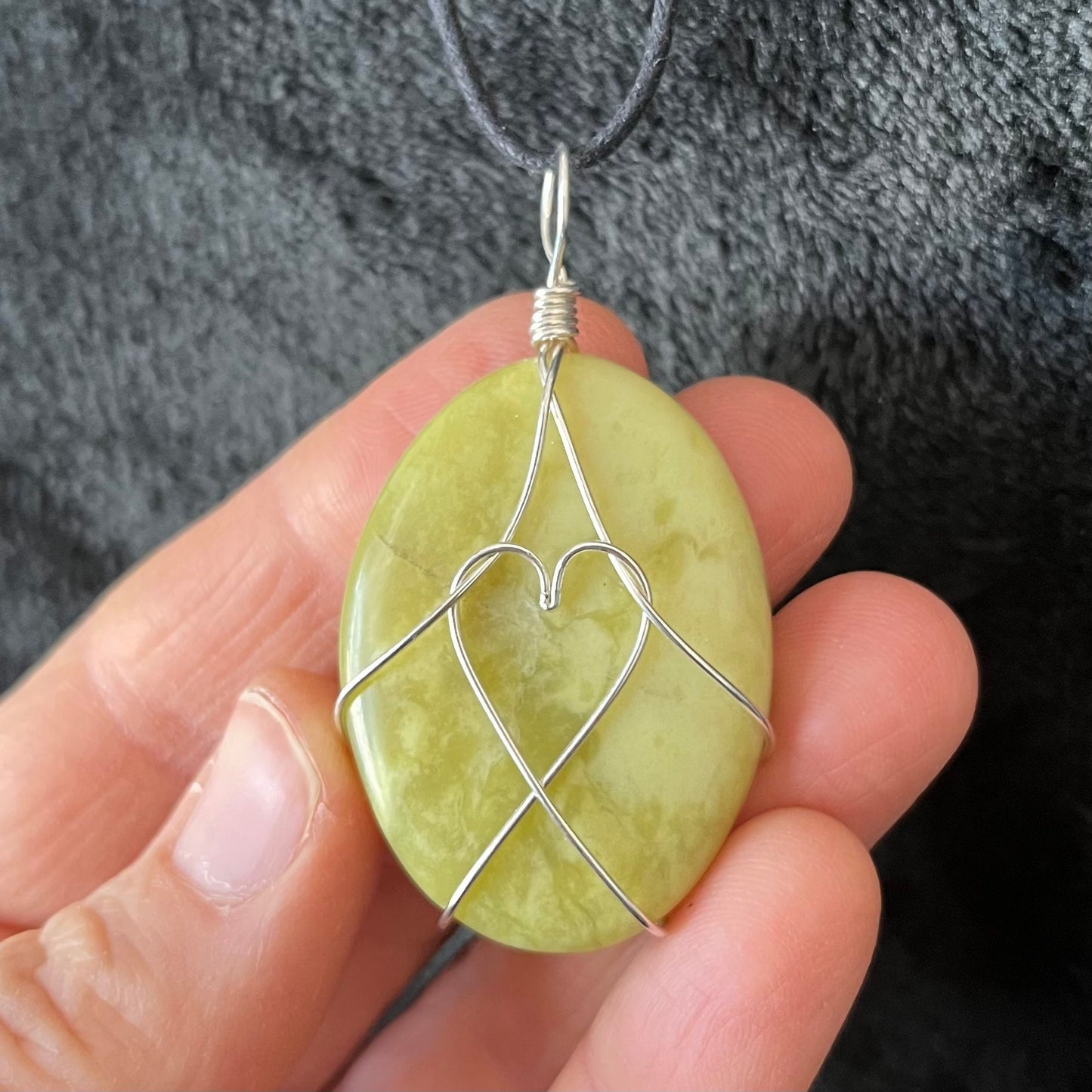 Healerite Worry Stone Wire Wrapped Necklace, with Heart NCK-2982