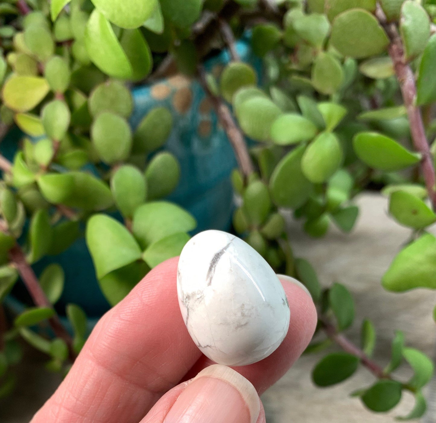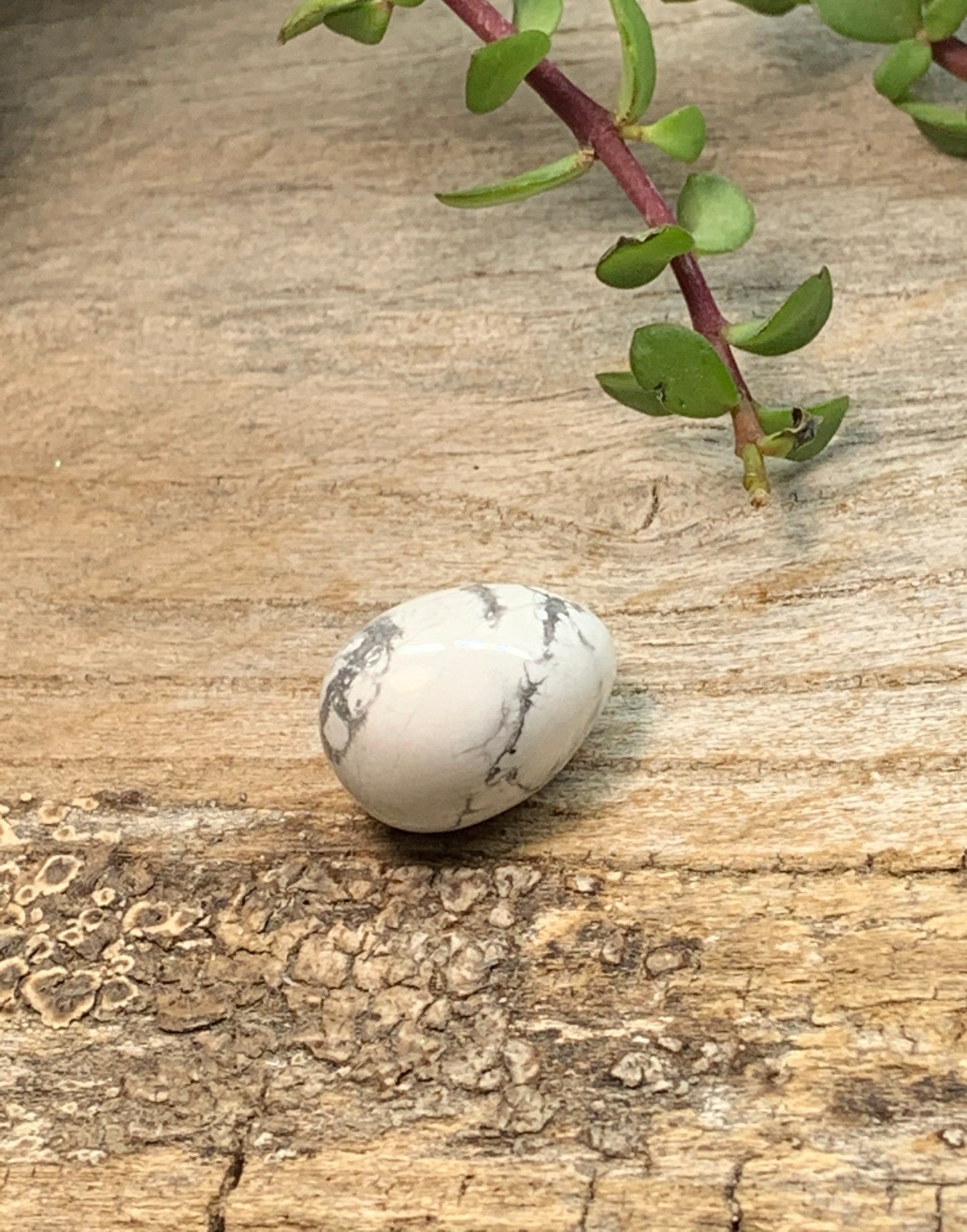 Howlite Egg 3/4” 0429 Absorbs negative energy and calms. See more at stonepathtrading.com