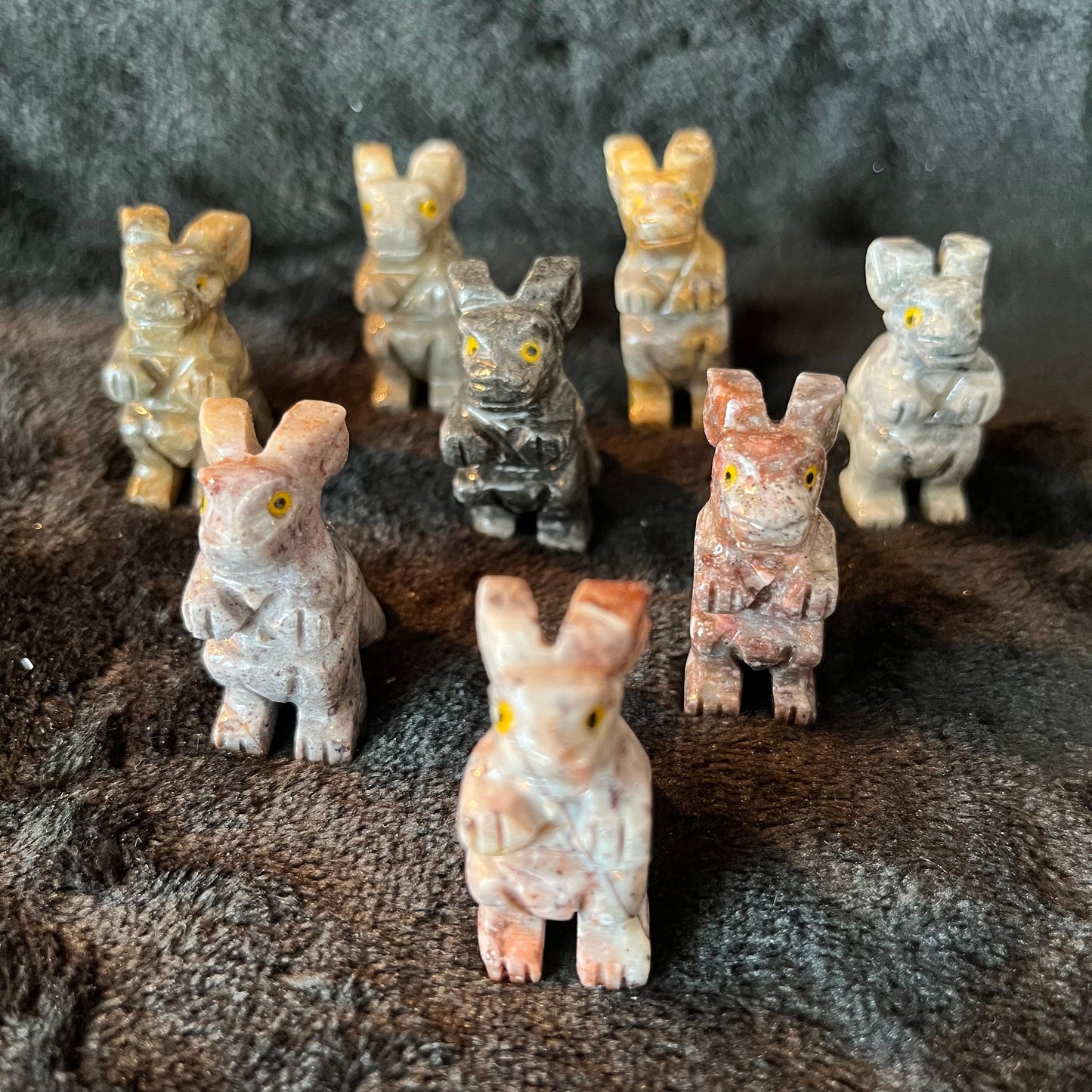 You will receive one of the soapstone figurines pictured in the listing or one similar to them, intuitively chosen by me. Size is approximate and each stone varies.
