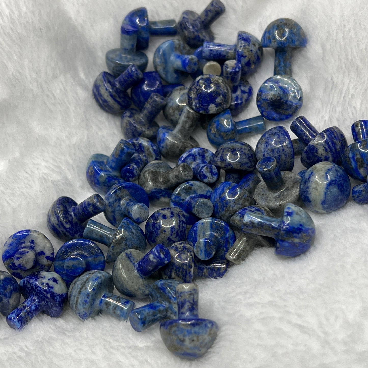 Lapis Lazuli Carved Mushroom 0703 Approx. 5/8”- 3/4” A Third Eye Chakra opener, Lapis Lazuli connects the physical and celestial kingdoms. Deeply peaceful, Lapis provides wisdom into mystical realms and connection with spiritual guardians. Lapis Lazuli can be a key to spiritual attainment. Lapis also protects against psychic attack, shielding negative energy and returning any negative vibrations to their source. Lapis Lazuli will enhance dream work and spiritual journeying. Physically, Lapis Lazuli helps with the immune system, thyroid and nervous system. It can alleviate headaches, migraines, fevers and pain. See more at stonepathtrading.com
