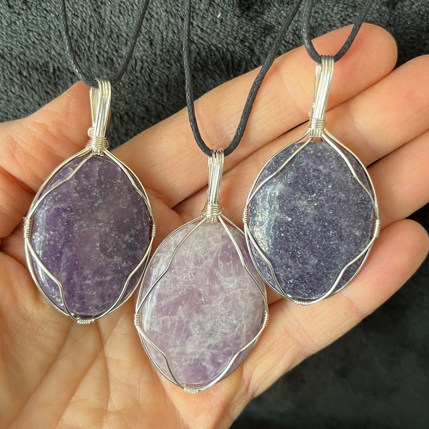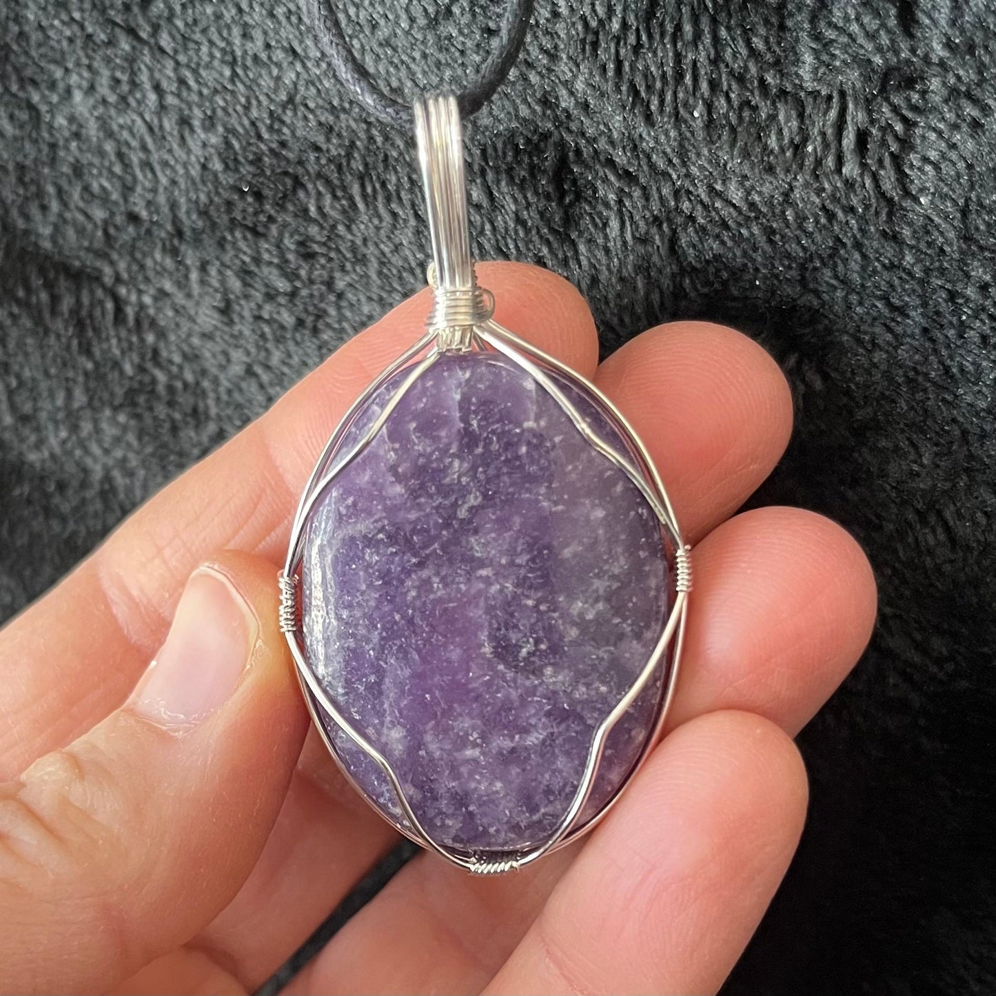 Lepidolite Worry Stone Wire Wrapped Necklace NCK-2988