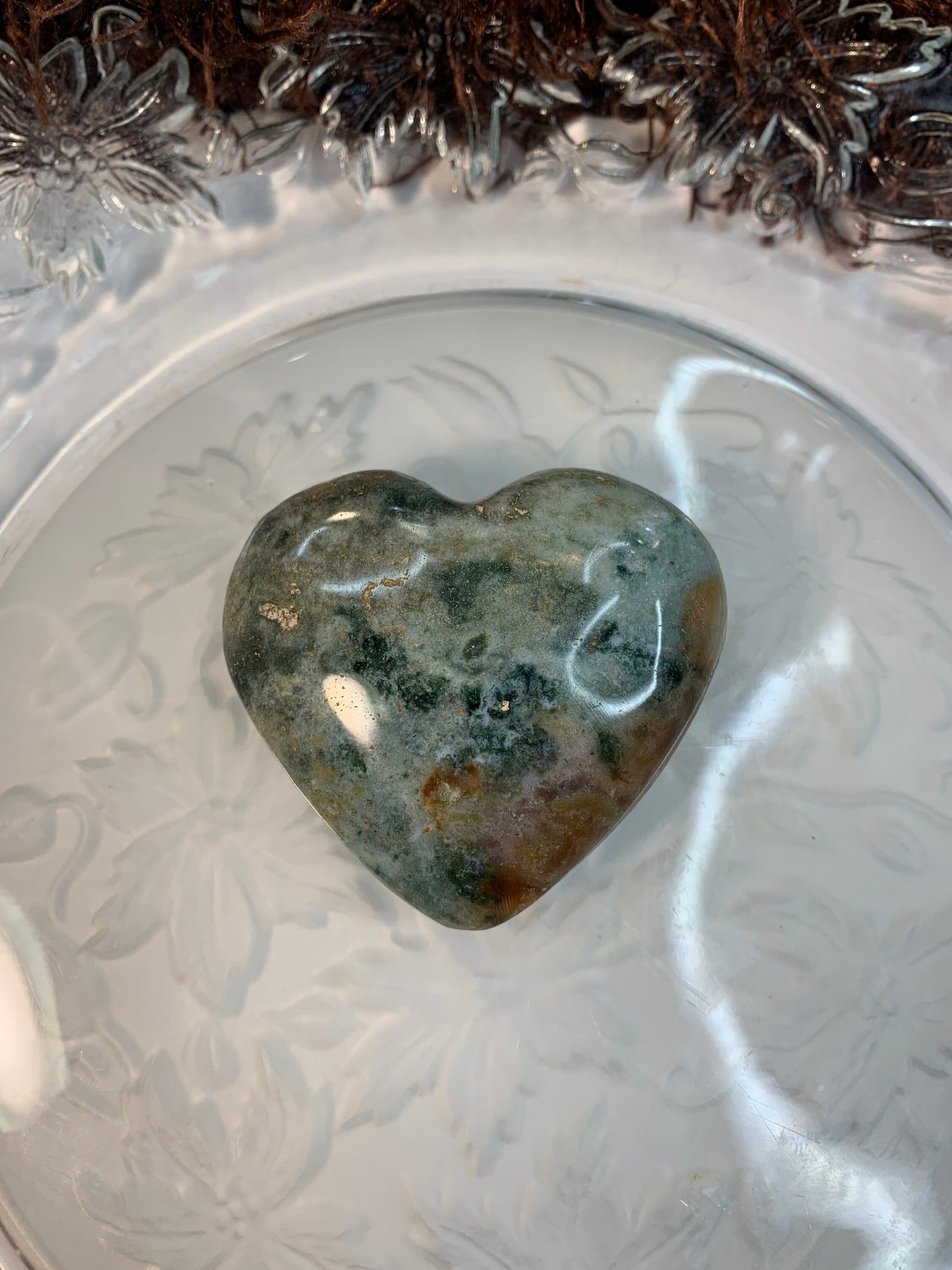 Moss Agate Heart, Beautiful, Polished, Manifesting Abundance (Approx. 2") 0576