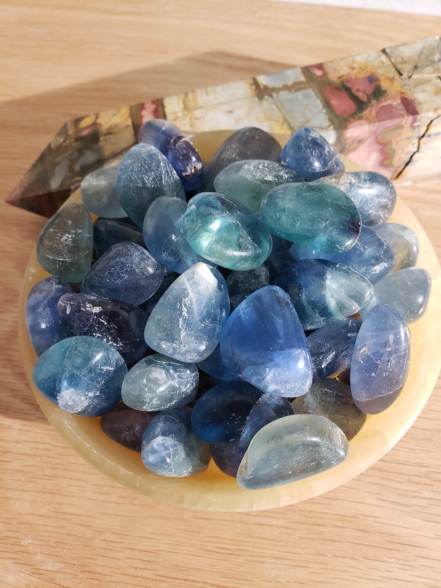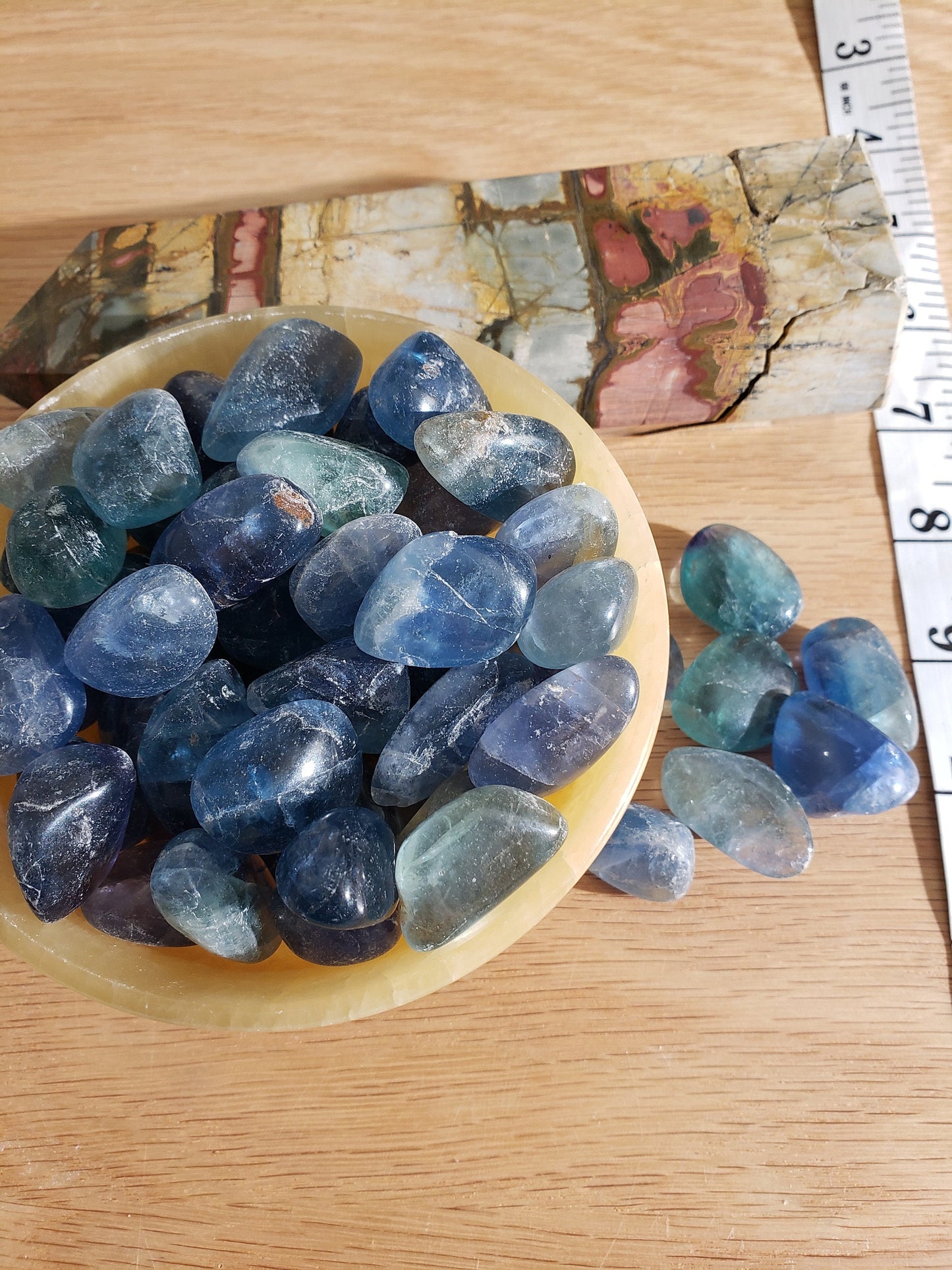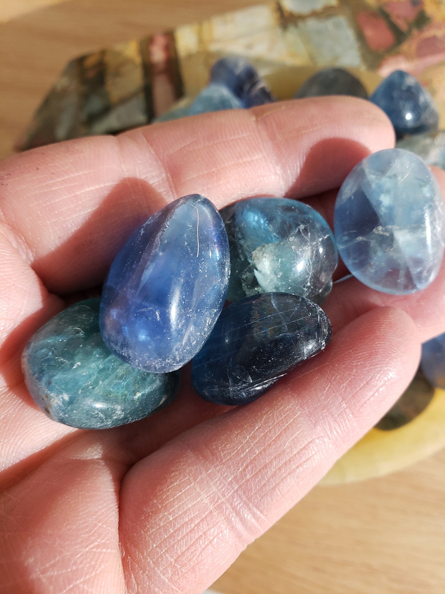 Natural Blue Fluorite Polished Crystal (Approx. 3/4" - 1") 0754-D You will receive one of the stone that I will intuitively choose for you. Size is approximate. This clarifying stone helps with creative visualization, clear communication and spiritual understanding. This calming stone soothes raw nerves, clears negative energy and encourages rest and relaxation. This is a great stone for releasing negativity. This stone can also be helpful in heart healing. See more at stonepathtrading.com