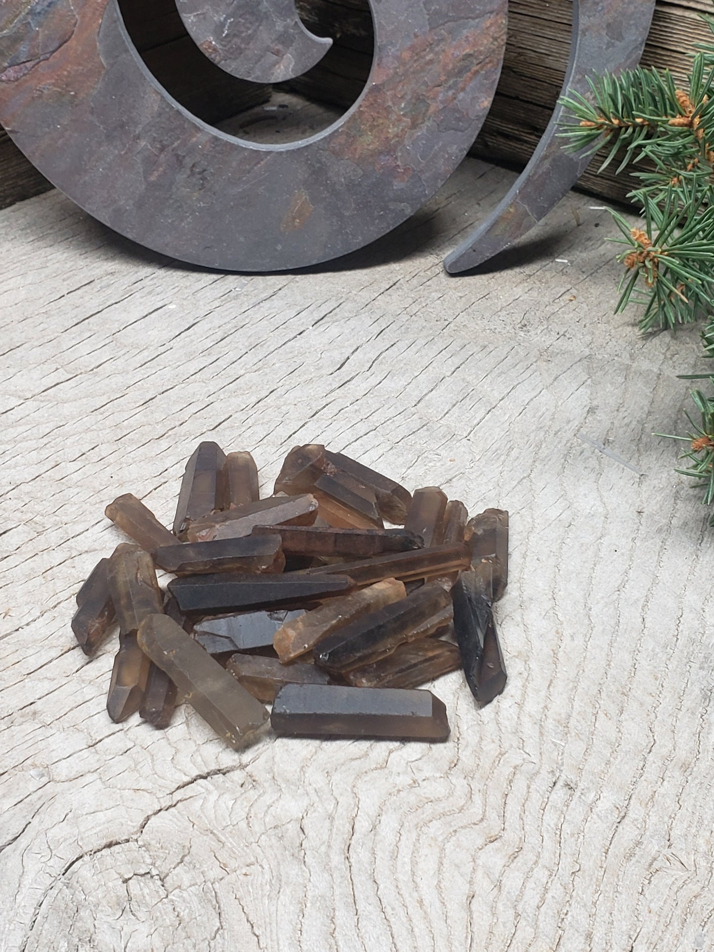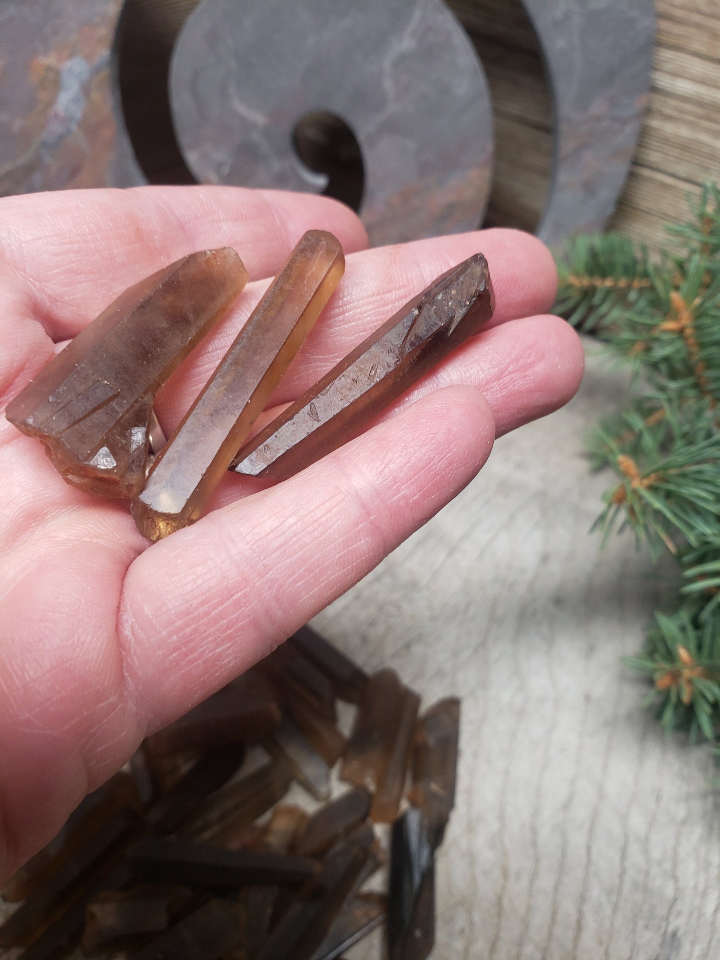 Natural Smoky Citrine Crystal Point, (Approx 1 1/4" -1 3/4" long) One Crystal, Quartz Rough, for Crystal Grid Making 0467 Smoky Citrine is a mixture of gold/yellow Citrine and Golden Smoky Quartz. ... For instance, the Smoky aspect can draw negative energy from the self, and the Citrine aspect will cleanse and transform the energy into a positive state, ready for one to use in an enlightening way. You will receive one crystal that I will intuitively pick from the stones pictured. Size is approximate. stonepathtrading.com
