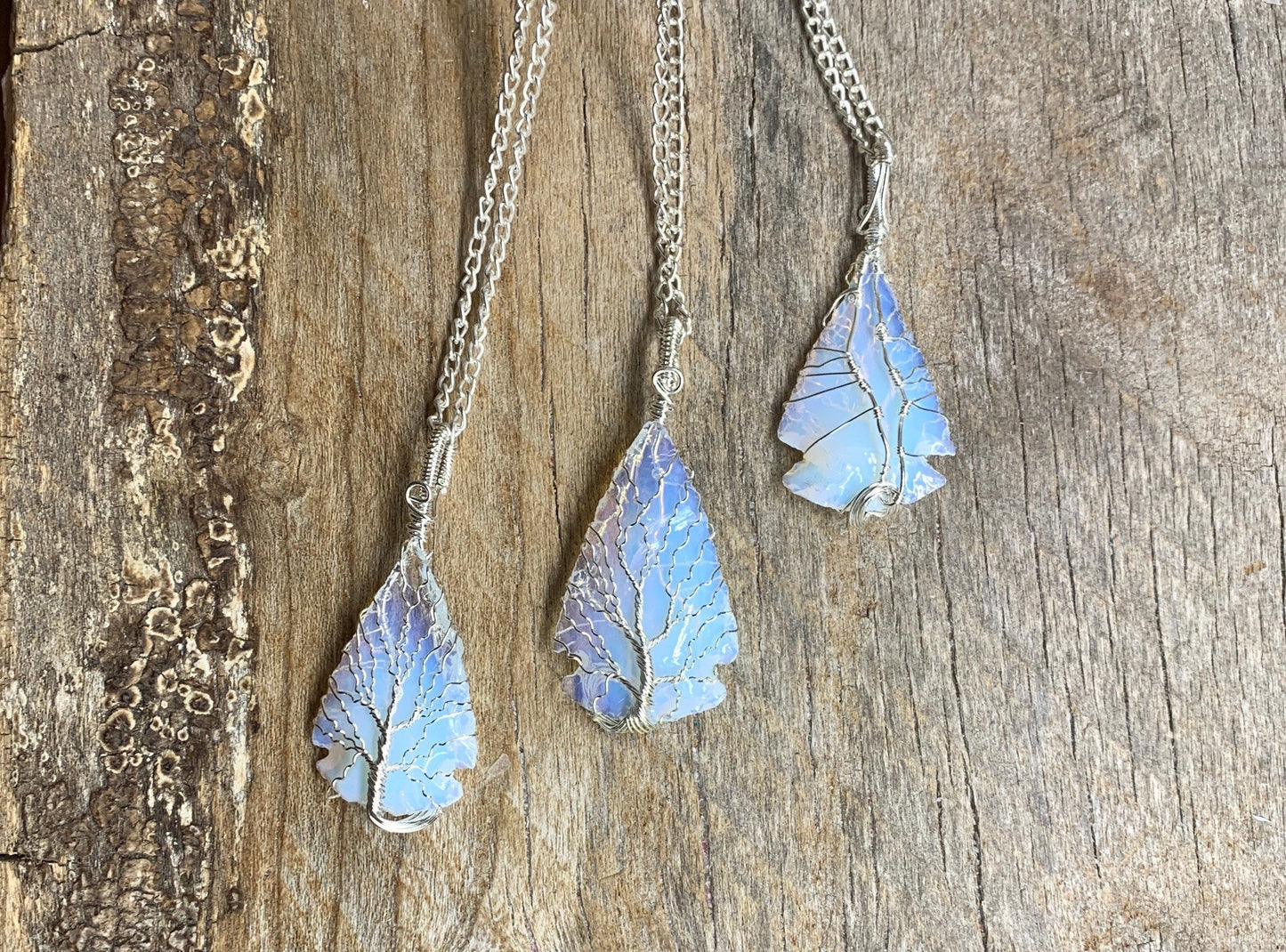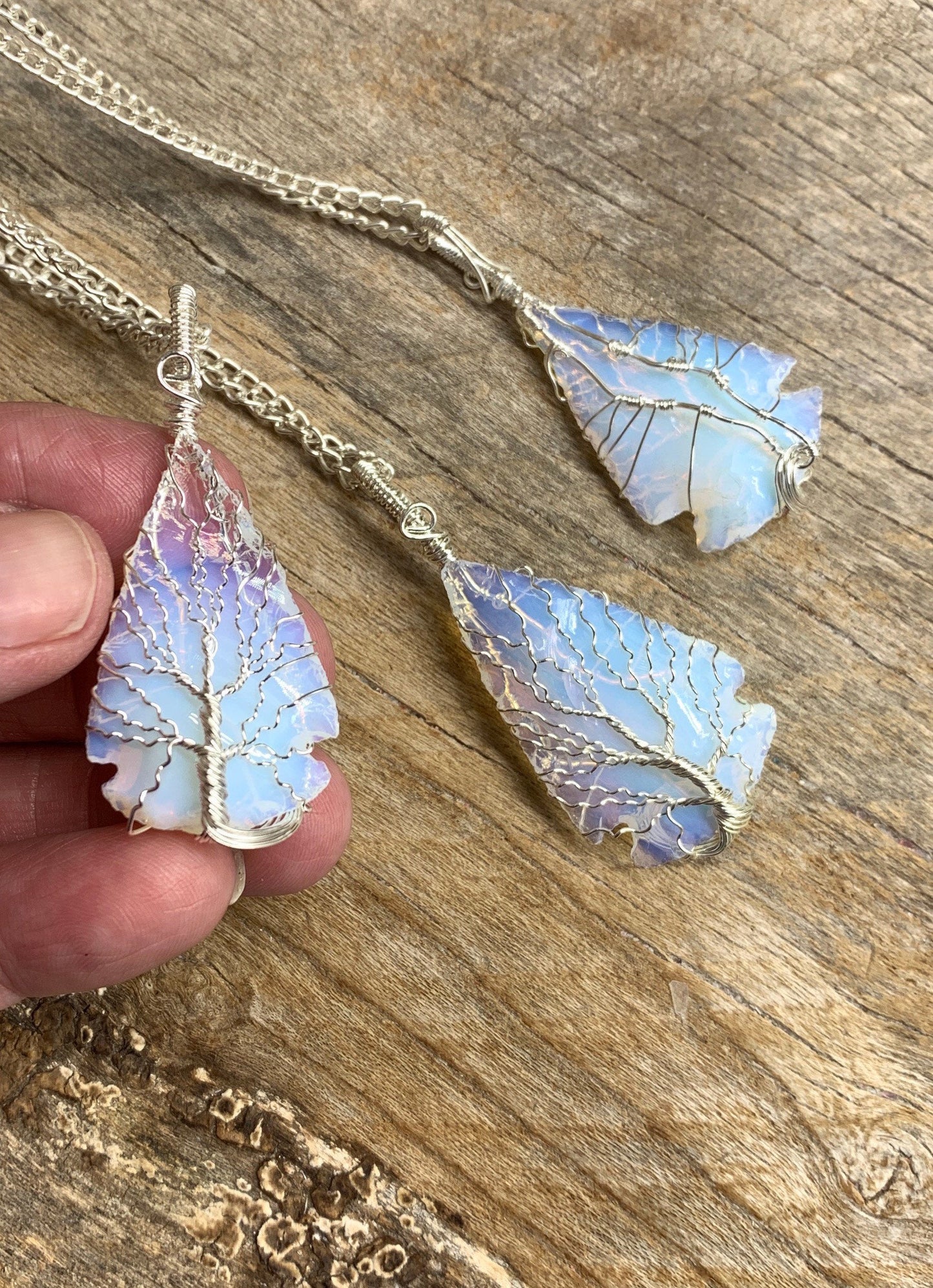Opalite Arrowhead Wire Wrapped, Tree of Life Necklace 1202 Tree of Life, Handmade