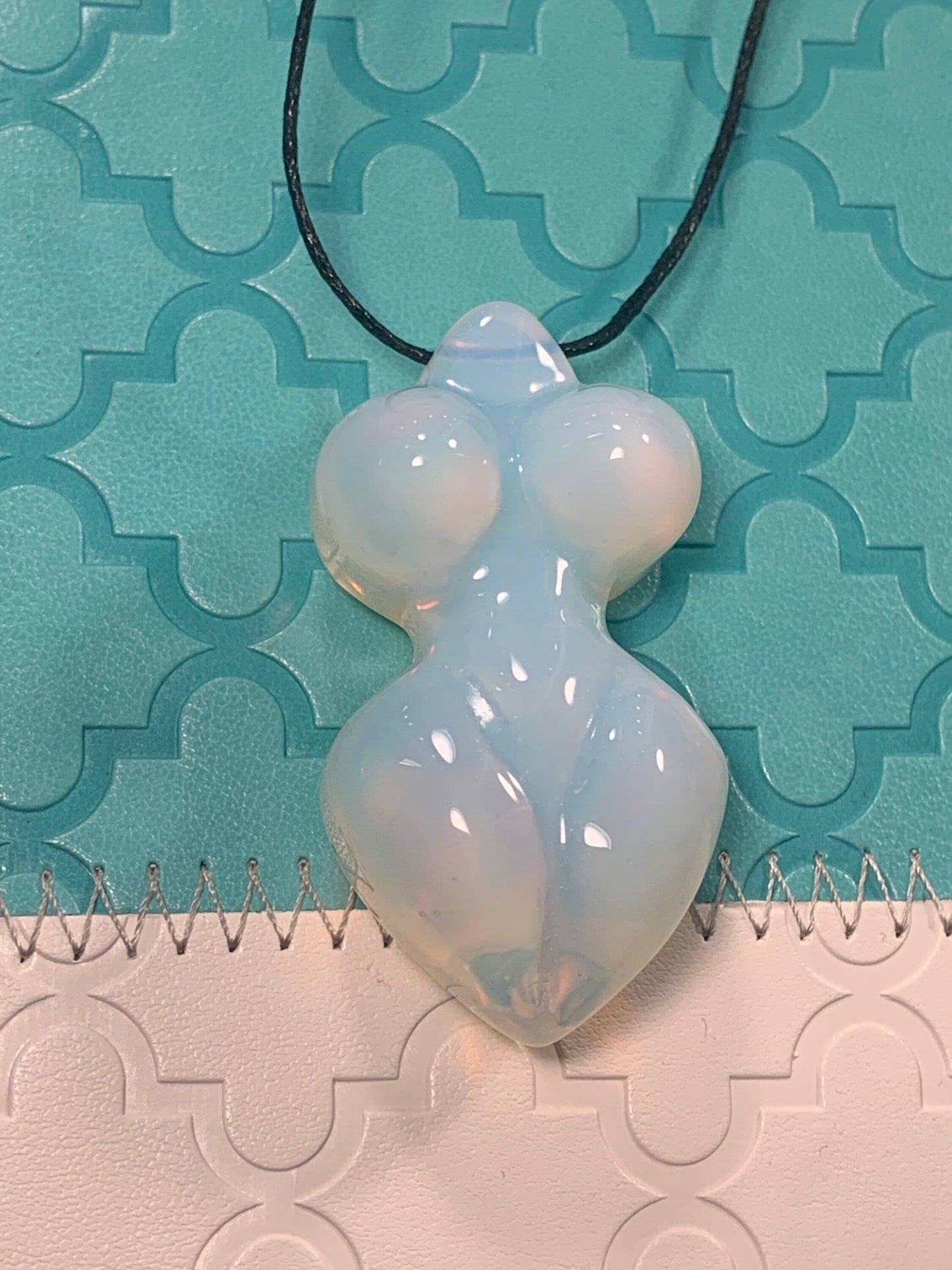 Opalite Goddess Necklace: Useful for enhancing intuition and psychic powers. HOT-0016 This is a beautiful item depicting an accurate depiction of the female form to embrace the goddess within. HOT ITEM, HOT-0016 You will receive 1 necklace similar to that pictured in listing. See more at stonepathtrading.com