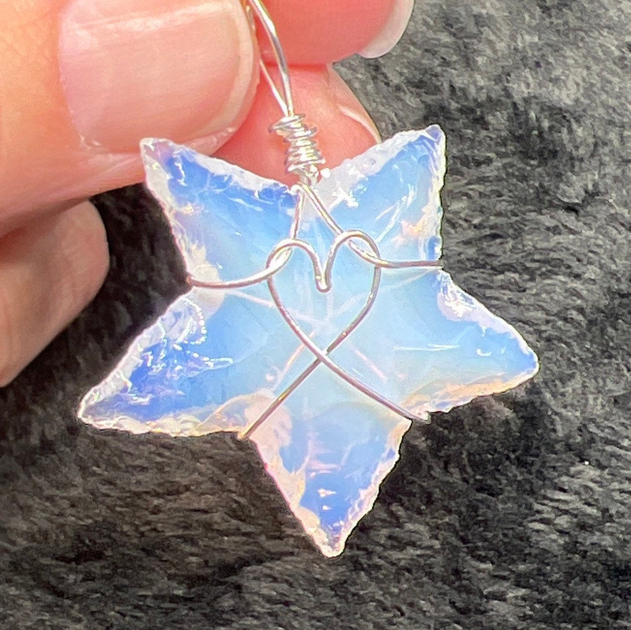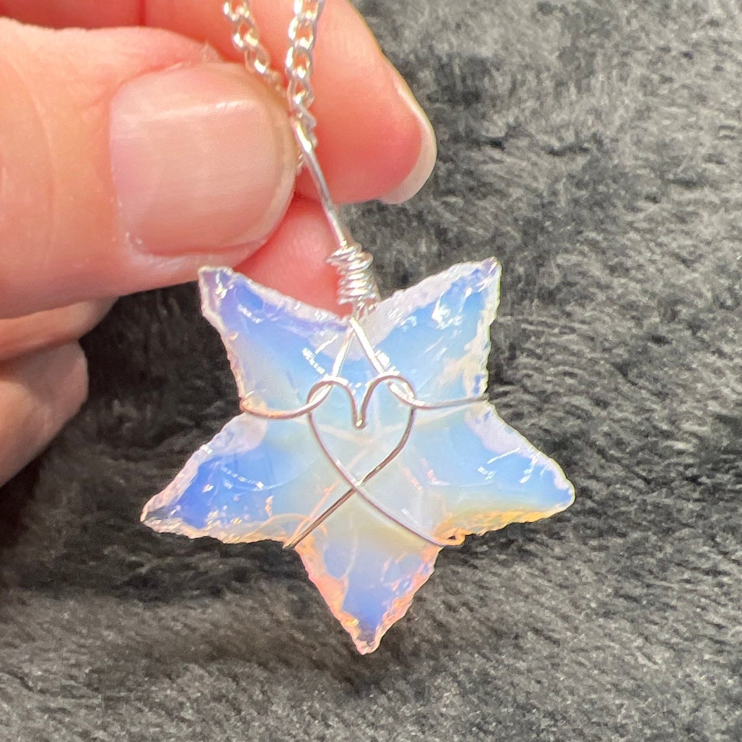 Opalite Wire Star with Heart Wire Wrapped Necklace 1132 Star, Handmade Focuses on energy of all kind. Known as the master healer. You will receive one necklace that I will intuitively choose from the ones pictured in this listing. Size is approximate and each necklace varies. See more at stonepathtrading.com