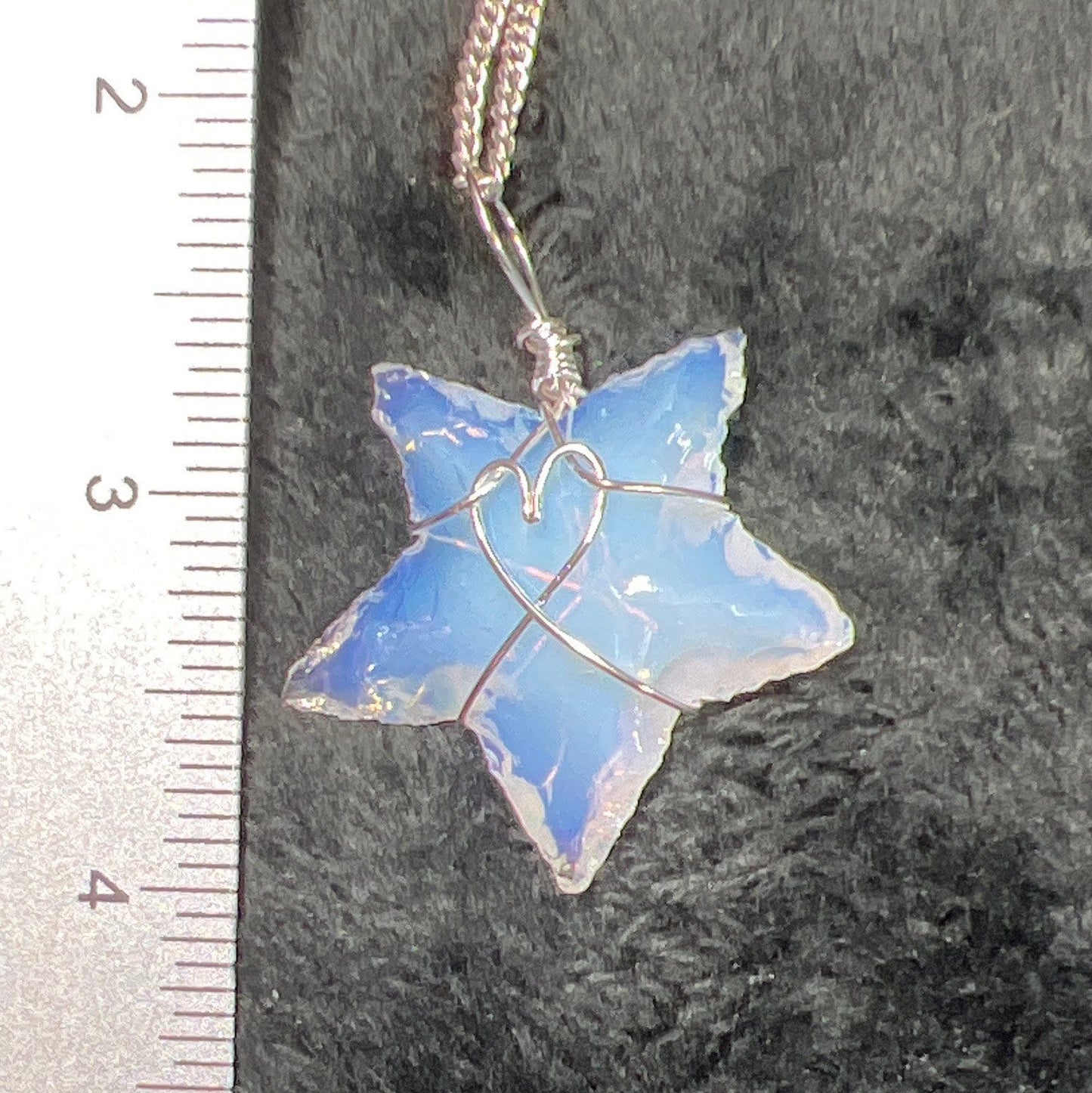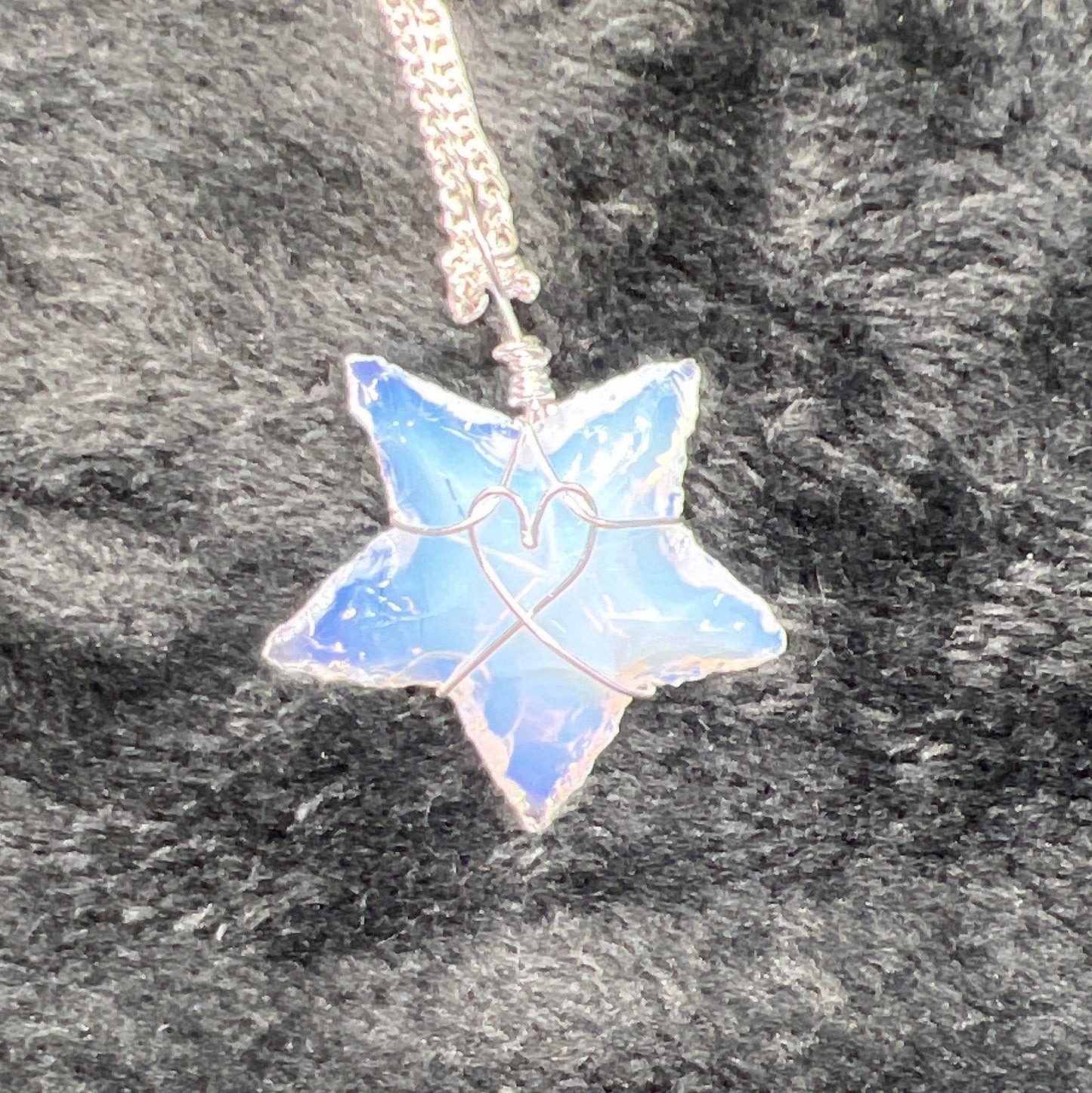 Opalite Wire Star with Heart Wire Wrapped Necklace 1132 Star, Handmade