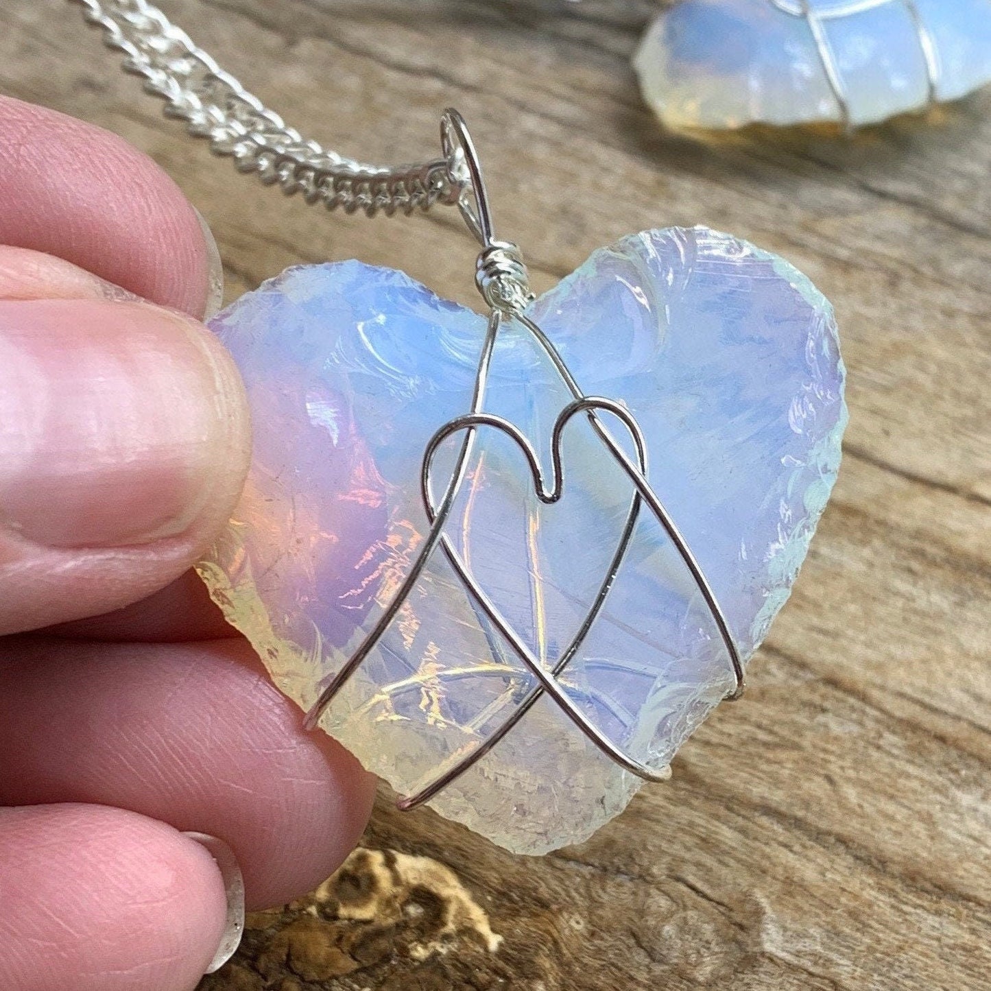 Opalite Wire Wrapped Necklace 1200 Heart, Hand-made