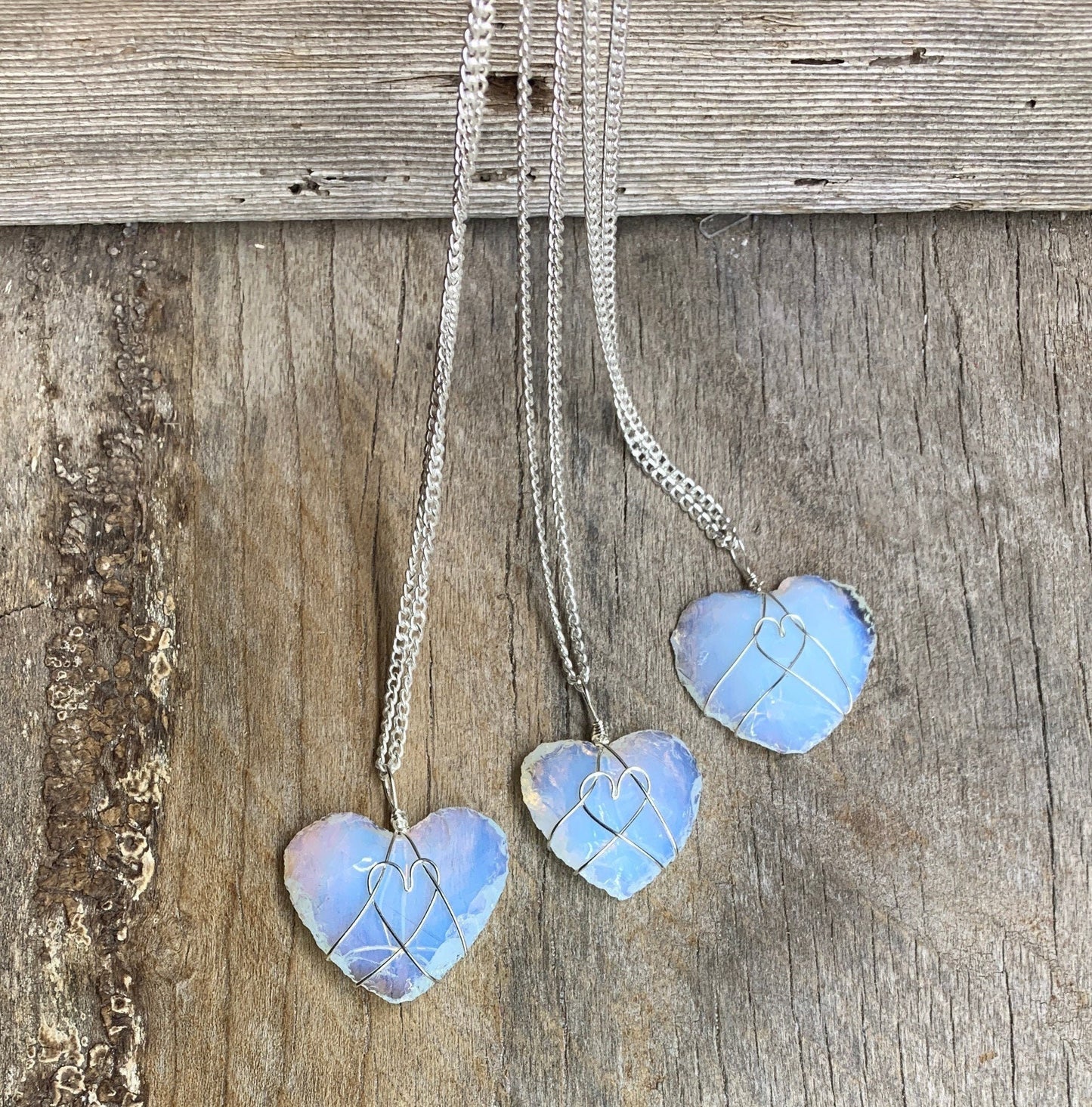 Opalite Wire Wrapped Necklace 1200 Heart Focuses on energy of all kind. Known as the master healer. You will receive one necklace that I will intuitively choose from the ones pictured in this listing. Size is approximate and each necklace varies. See more at stonepathtrading.com