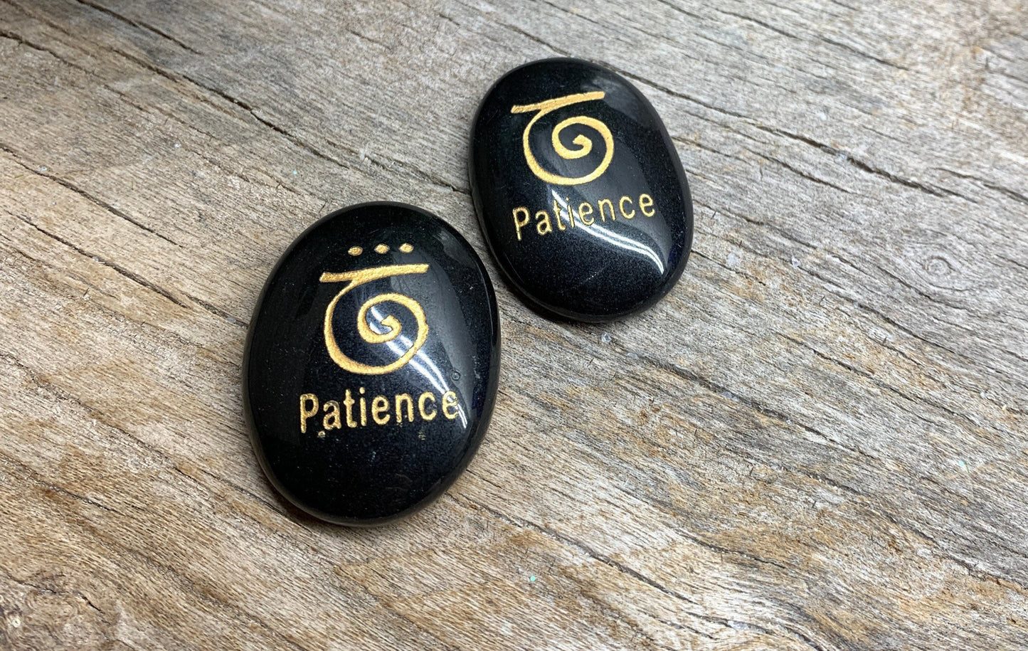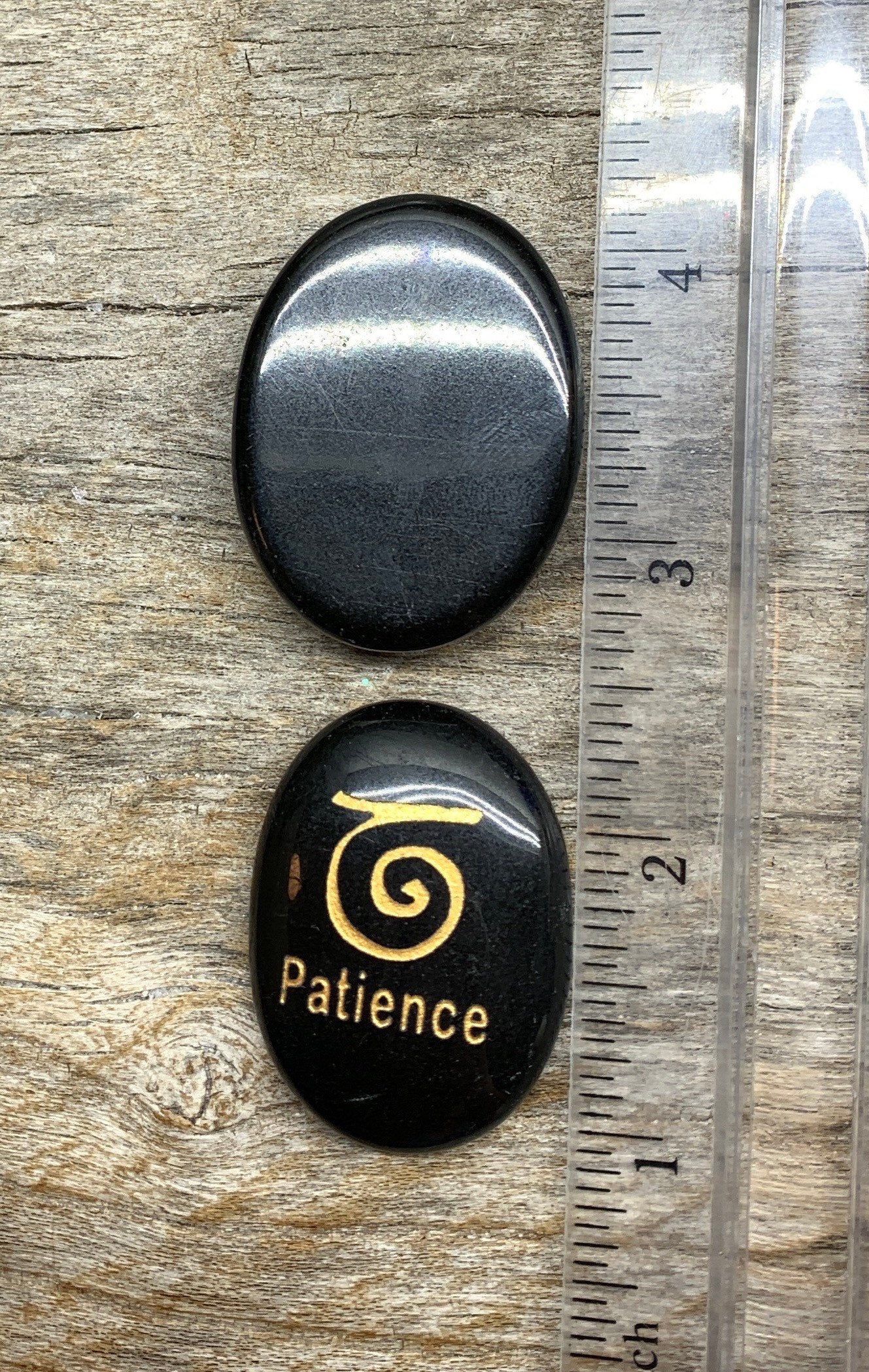 Patience, Black Obsidian Carved Word Affirmation (Approx. 1 1/2") FIG-0317