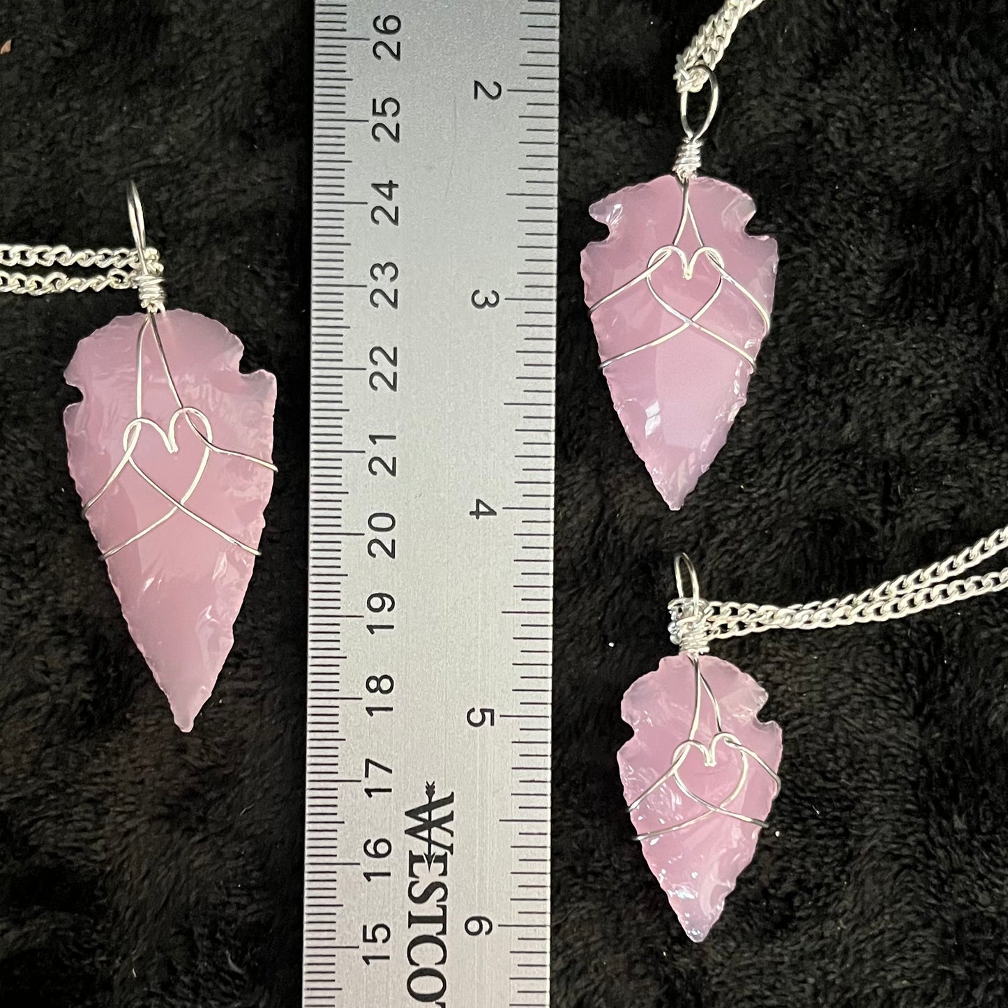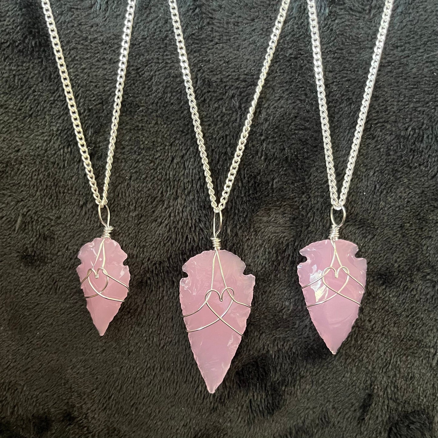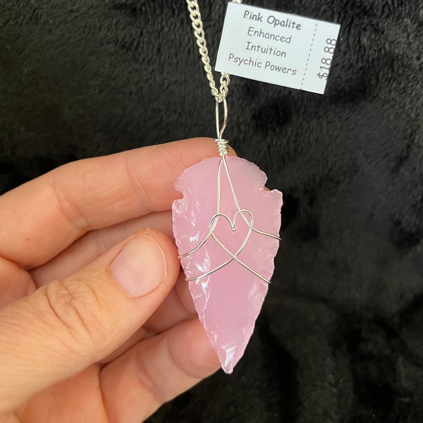 Pink Opalite Arrowhead Wire Wrapped Necklace, with 22” chain 1139•Enhanced Intuition