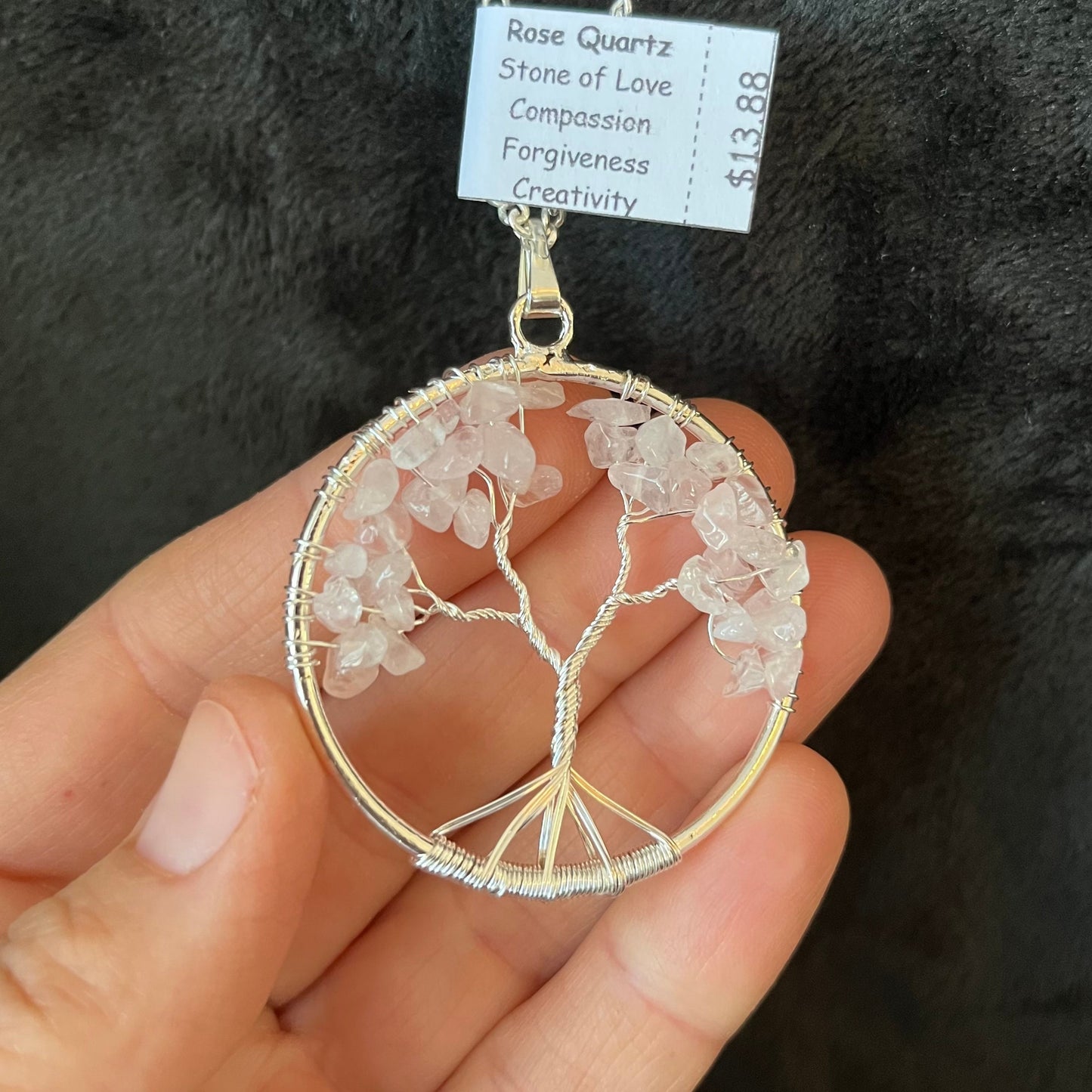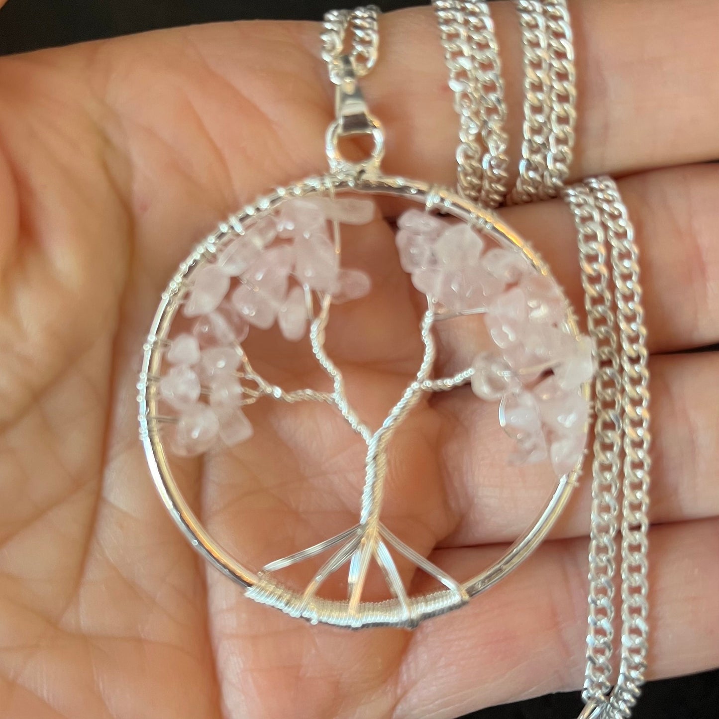 Rose Quartz, Tree of Life Wire Wrapped Necklace, with 22” chain 1118