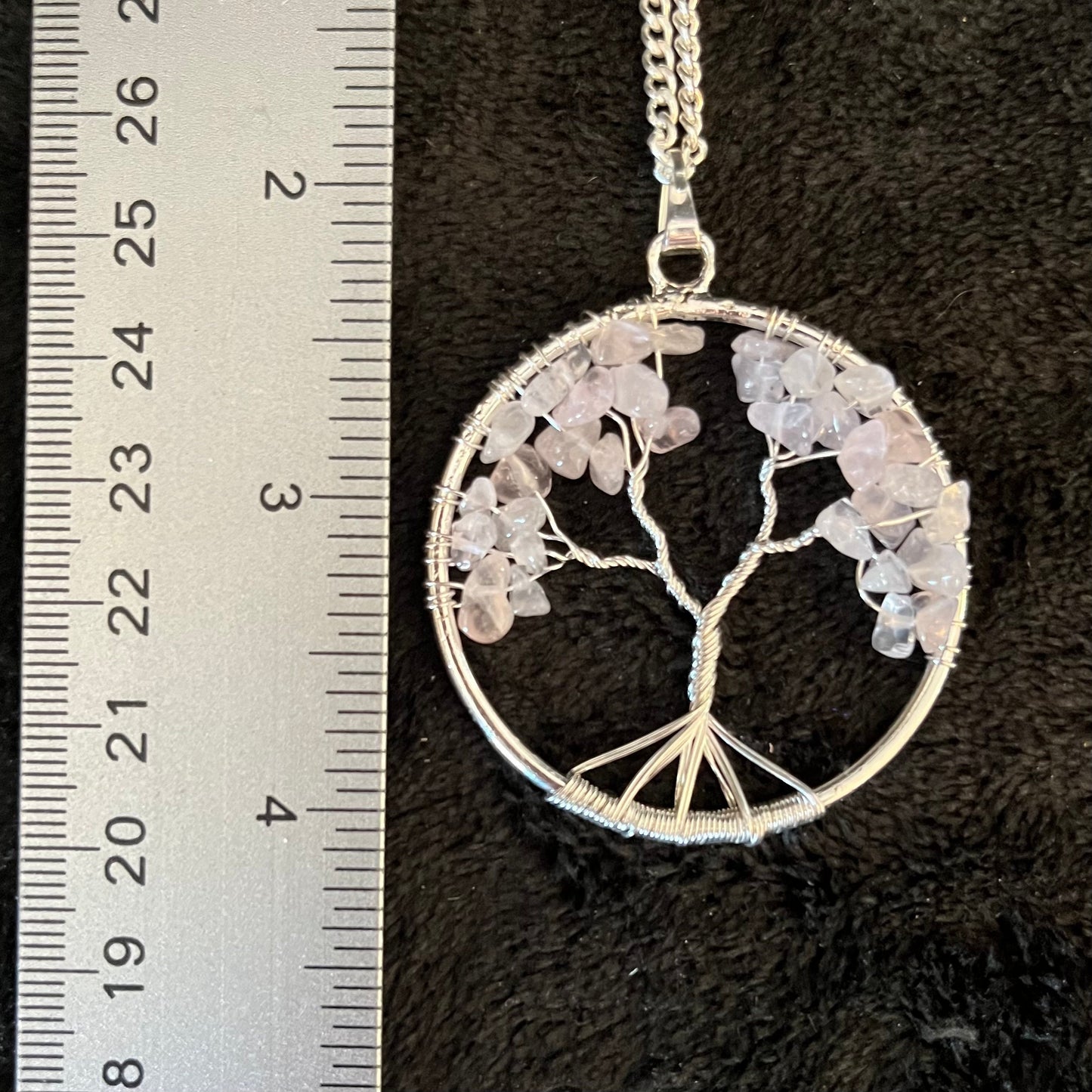 Rose Quartz, Tree of Life Wire Wrapped Necklace , with 22” chain, 1118