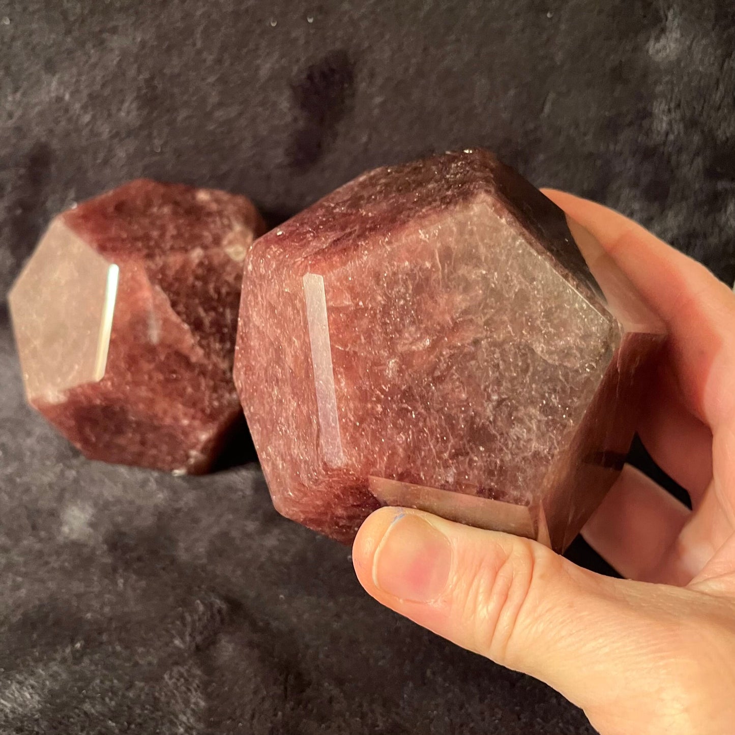 Strawberry Quartz Dodecahedron (Approx. 85mm) F-0085 You will receive one of the gemstones pictured in the listing intuitively chosen by me. Size is approximate and each stone varies. •Love
