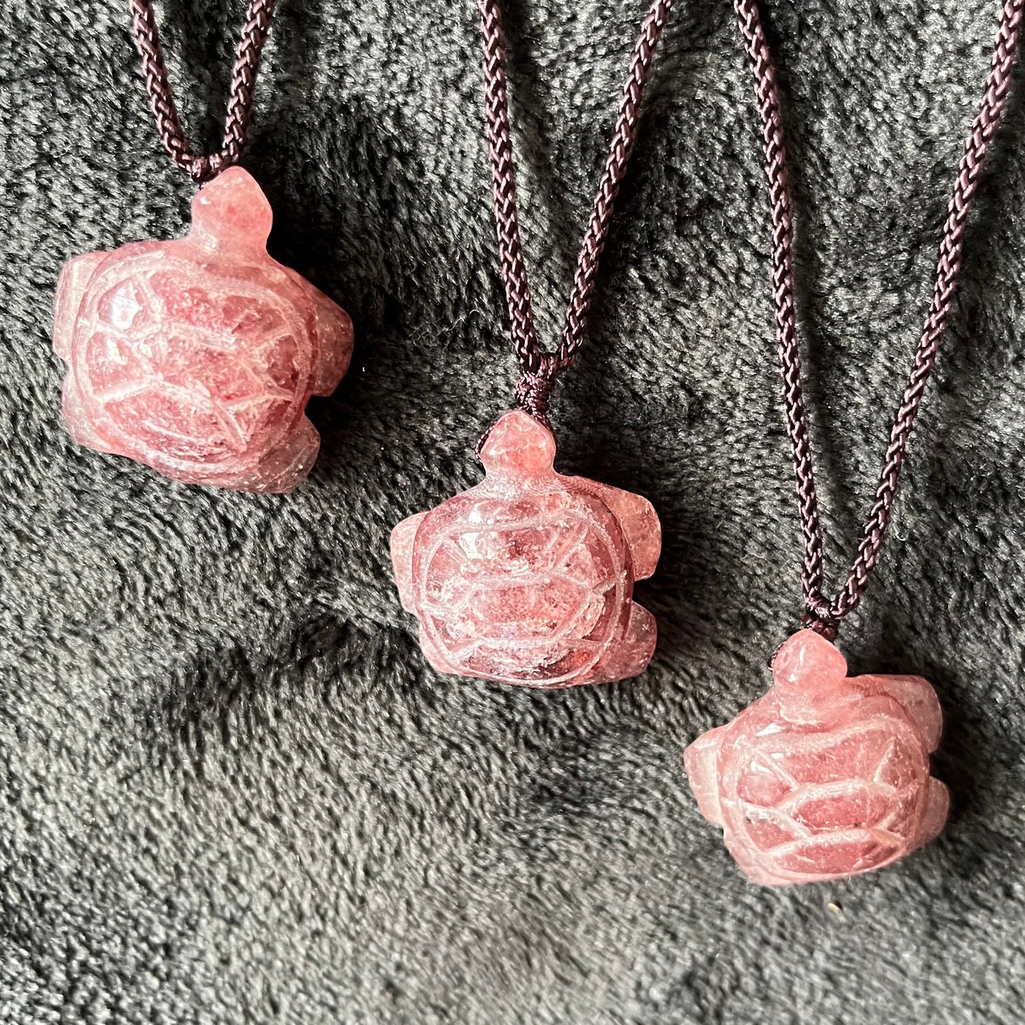 Strawberry Quartz Turtle Necklace NCK-2839•Love
